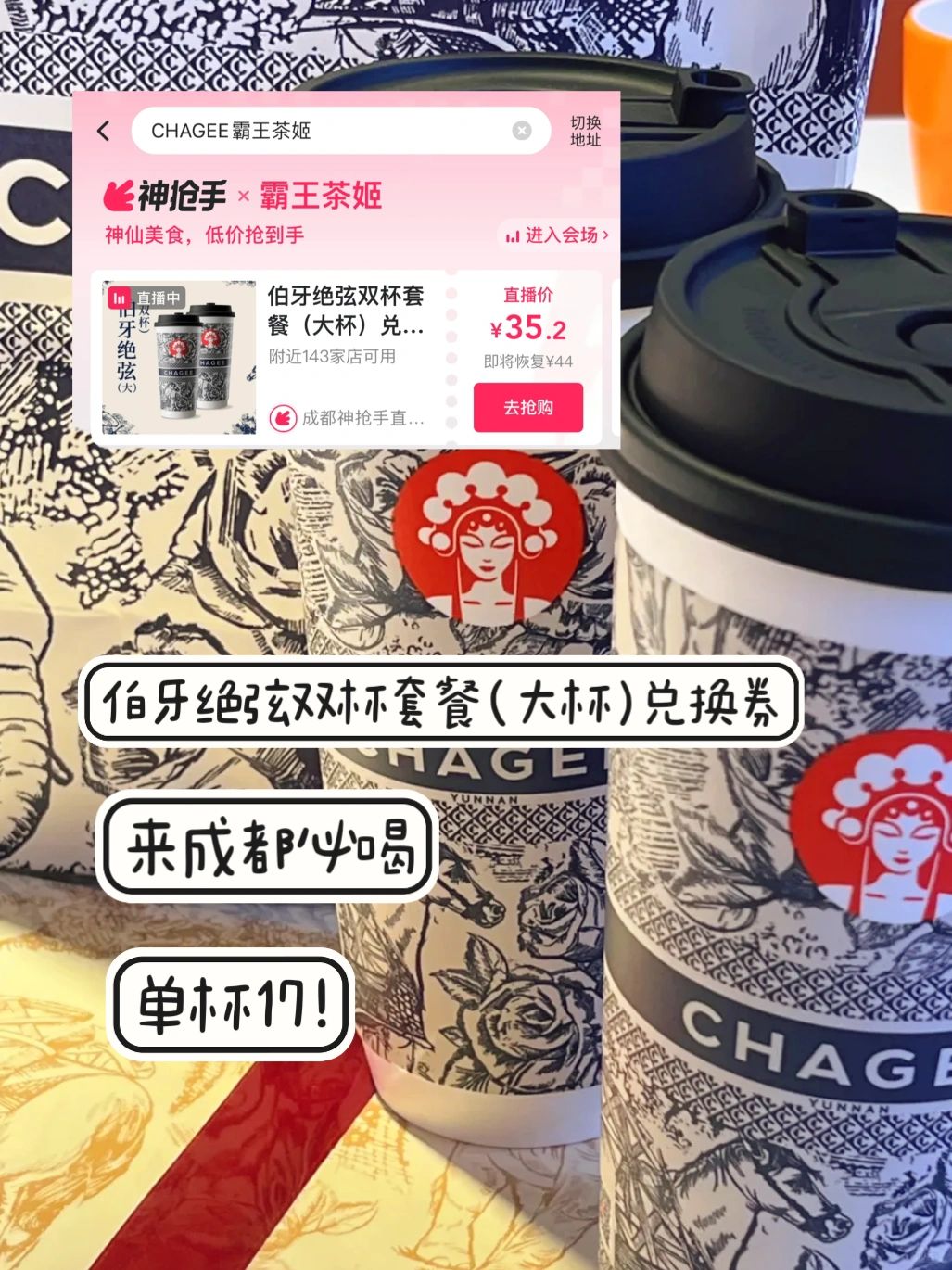 ✔伯牙绝弦双杯套餐(大杯)兑换券35.2R(原价44R)