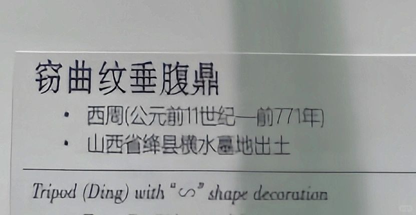 山西博物院 藏品“窃曲纹垂腹鼎”,器身敞口,宽平沿外折,半球形腹,圜底近平,三蹄足。口沿下两侧置对称的长方形附耳。附耳内外侧皆饰重环纹,口沿下饰一周窃曲纹,腹饰波带纹,中间以素面条带间隔。鼎内壁铸有铭文“晋□氏妃作宝鼎,其万年无疆子孙永宝用享”。