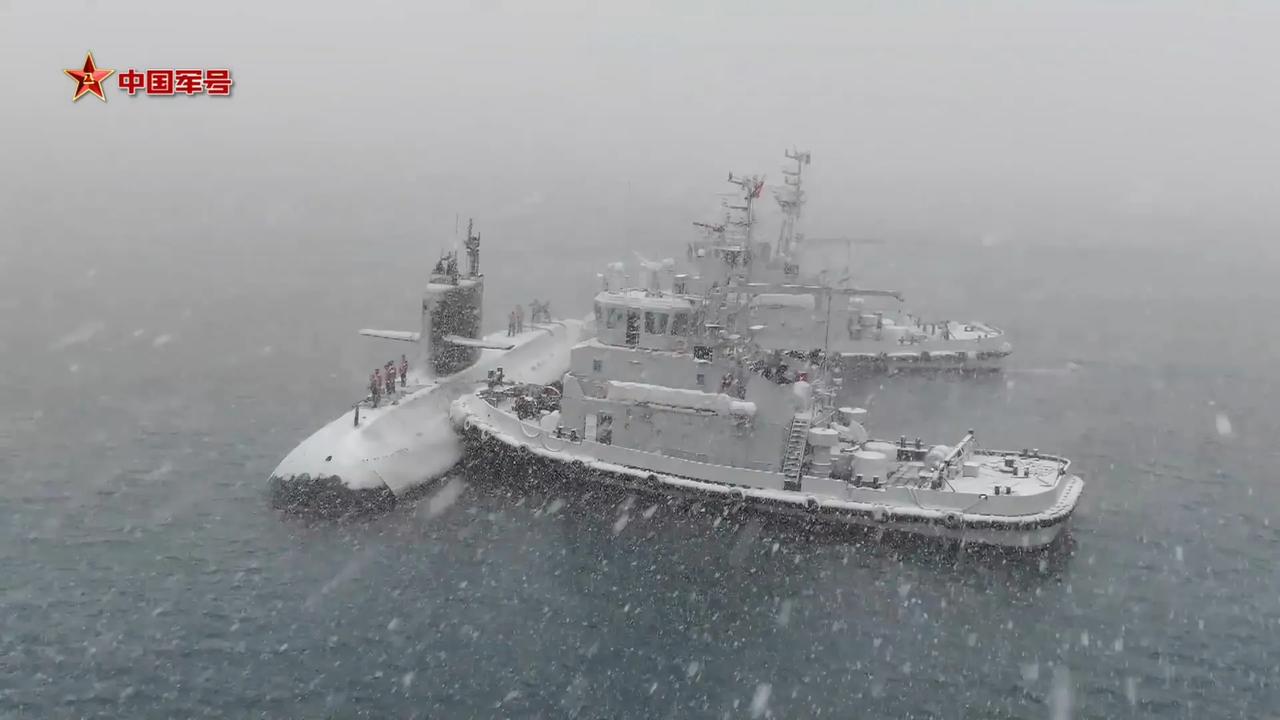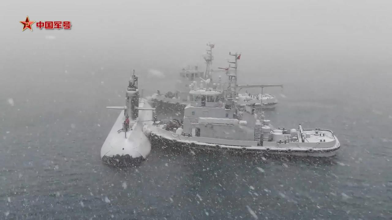 潜艇在风雪中出击。