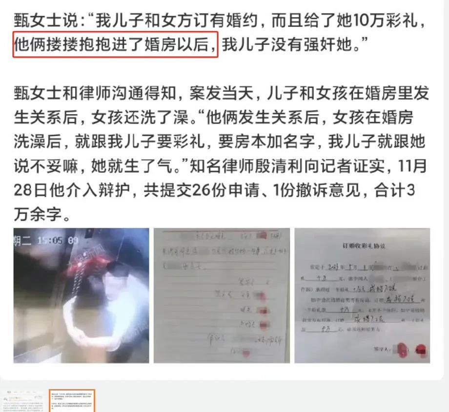 一审宣判后确认以下几点重要案情:1、事后女方洗过澡,即代表没有生物证据证明两人发生过关系;2、女方事前说过不想在登记结婚前发生关系,甄某用“嗯”来承认这一点;3、事后女方确实提过要求。