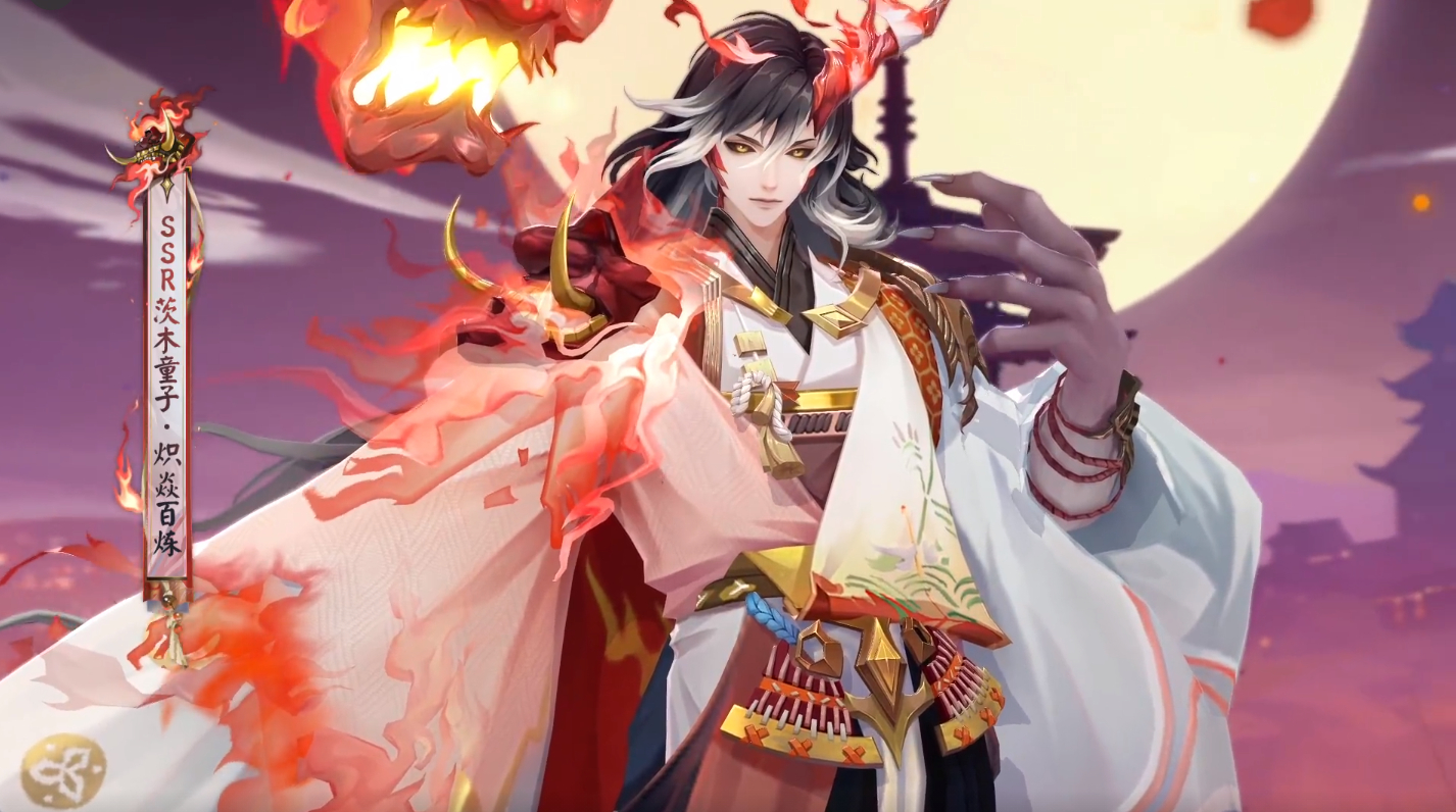 #阴阳师手游[超话]#奶茨在火中尽情散发魅力,这得勾走多少少女的心啊!这皮肤真的太帅了!#茨木童子典藏皮肤首日免费#