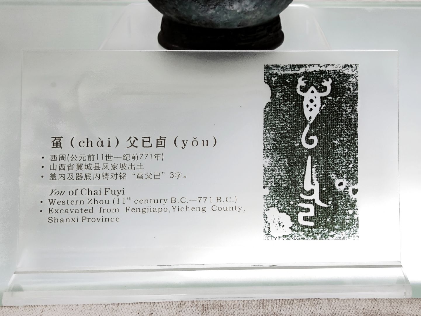山西博物院藏品“虿父已卣”是一件西周的青铜酒器,造型别致,花纹繁缛精美,显示出西周时期青铜器工艺的高超水平。 “虿父已卣”的盖内和器底均铸有“虿父已”三字,是该器物的名字。此卣的提梁和盖缘平雕两对兽头,盖面饰垂叶纹、圈点纹和云雷纹组成的兽体纹样,器身光素,以粗犷的圈点纹为饰,圈足饰云雷纹。