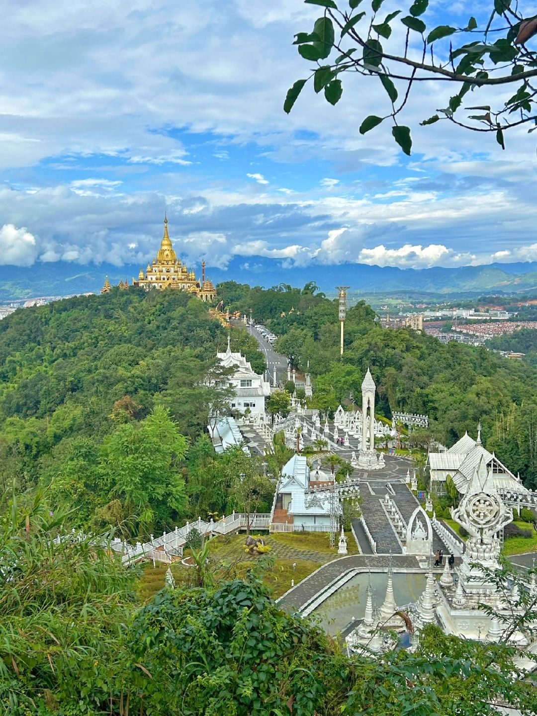 就在大金塔的对面,是一个私人打造的景区,同样很壮观,白色的塔身非常出片,而且能遥望对面金塔,位置很绝