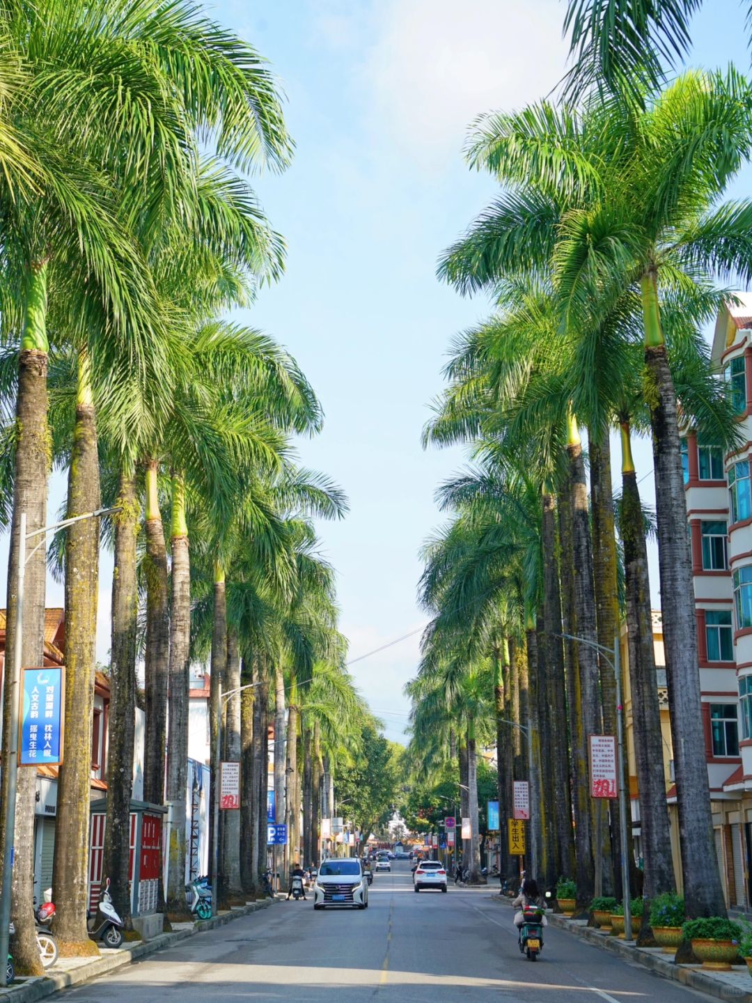 就在菩提寺那里,两边都是高大椰树,满满的东南亚风情
