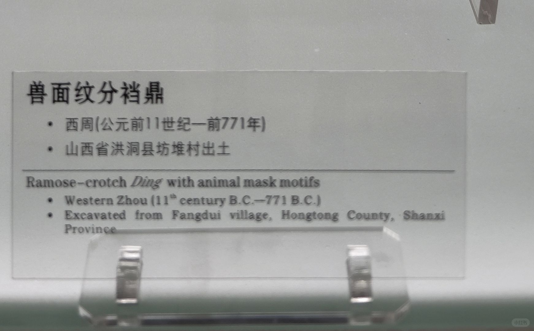 兽面纹分裆鼎也被称为鬲鼎,是鼎和鬲的混合体。这种器物的形制比较特殊,上部类似于鼎,而下部则类似于鬲,并且还有一段较长的锥足或柱足。 这种分裆鼎的纹饰非常精美,袋腹处装饰有大兽面,通常为臣字眼、眉状角和鼻上带有高扉棱。整个器物的造型和纹饰层次分明,线条粗犷而疏朗有致。这种青铜器在商代晚期较为流行,山西博物院 馆藏的这件兽面纹分裆鼎来自西周时期。