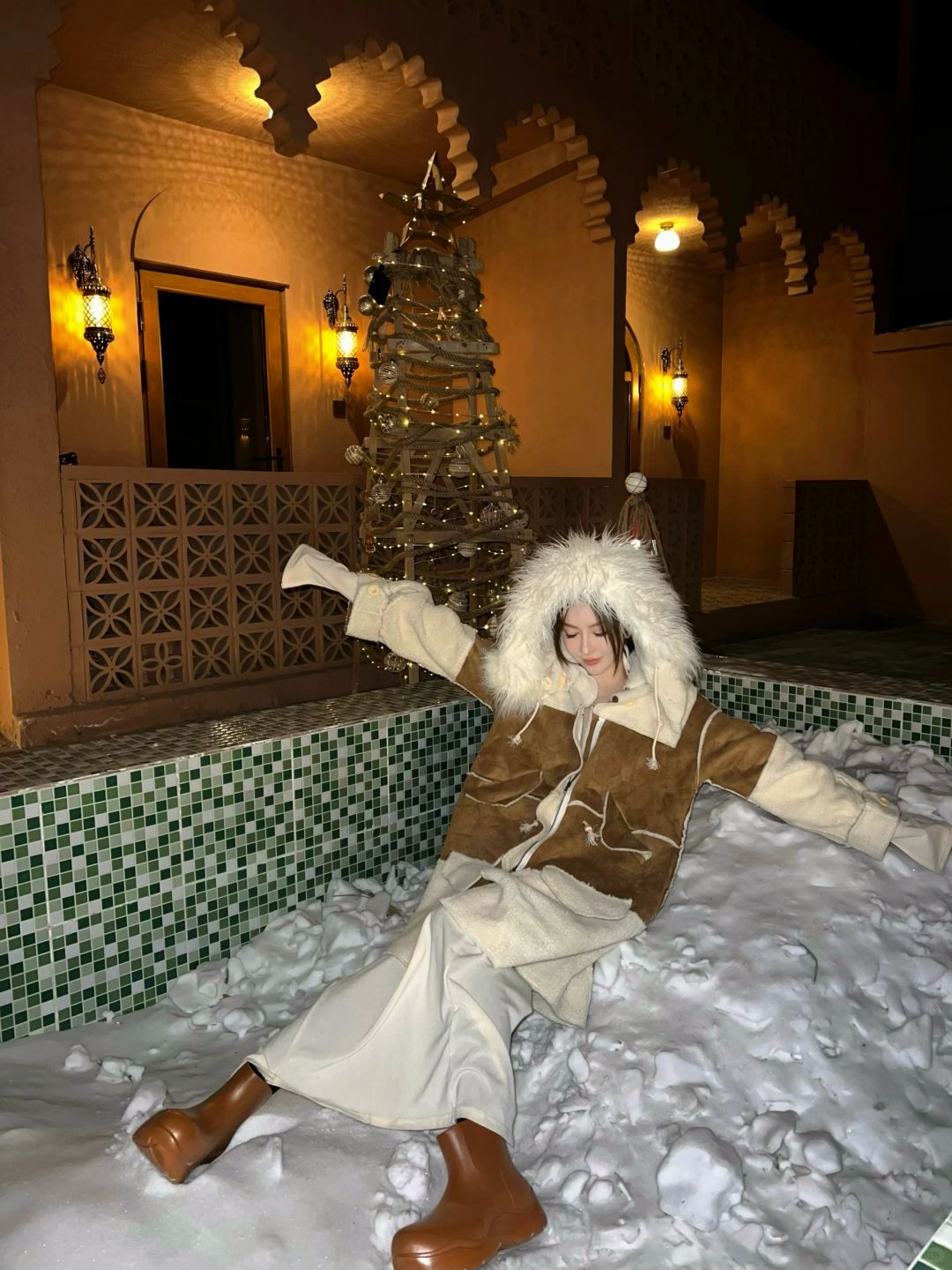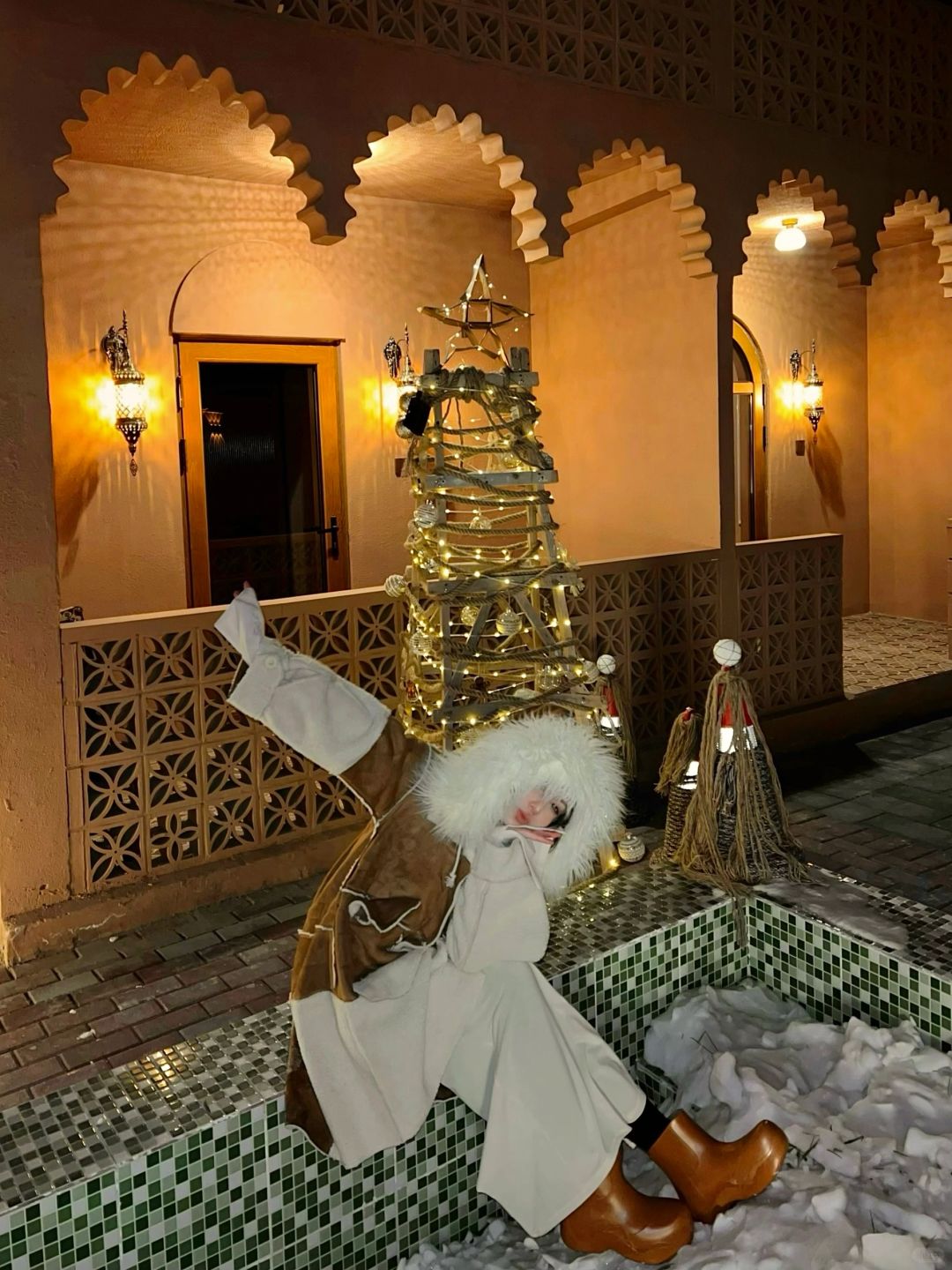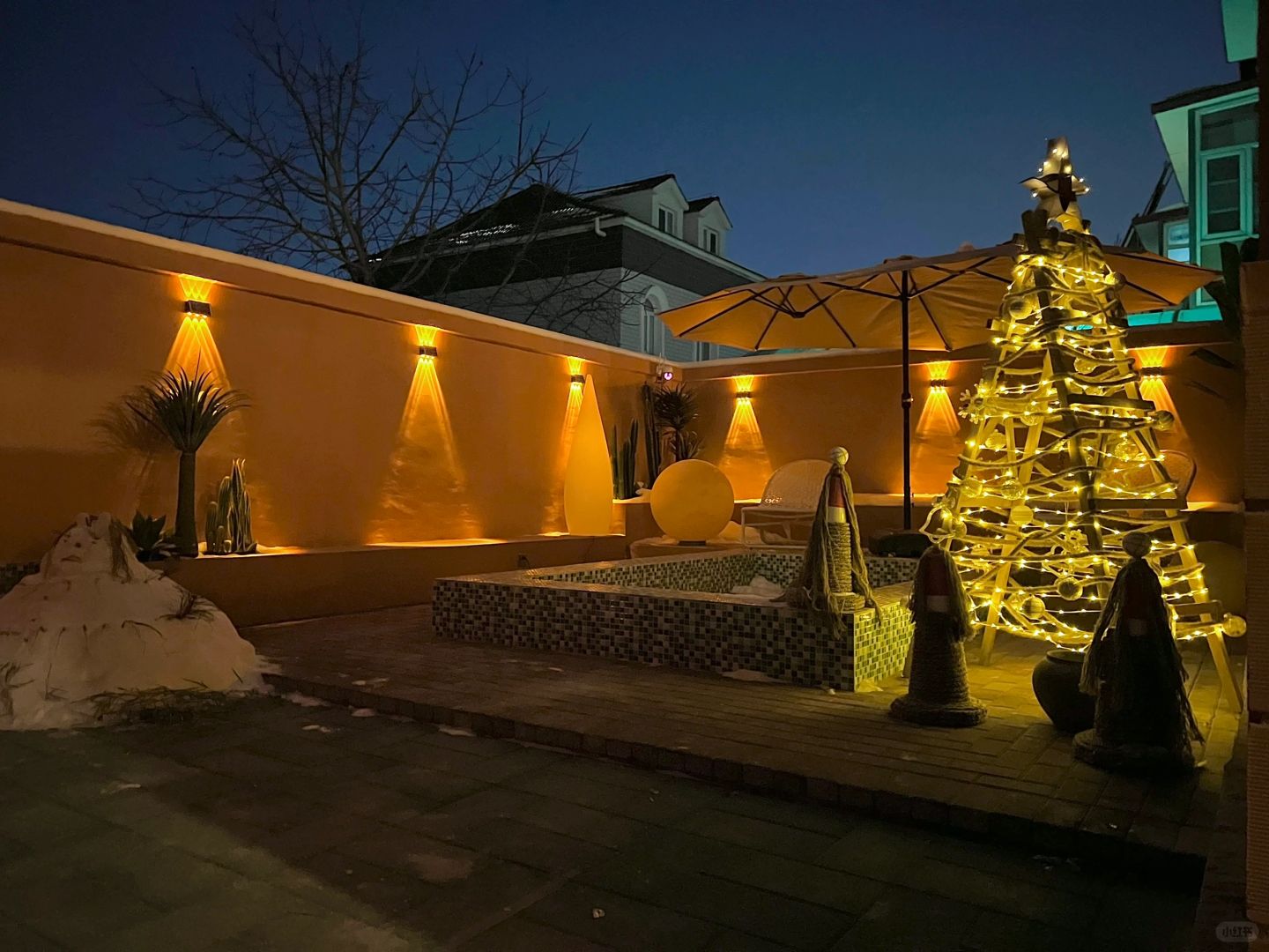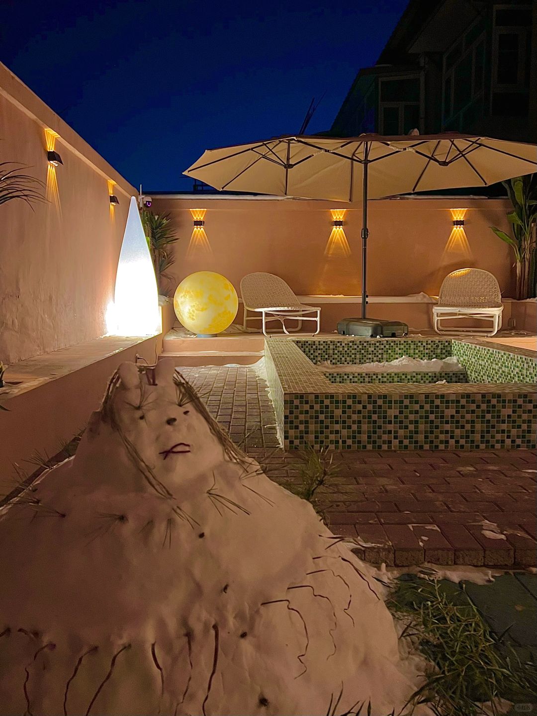 还是“一个老朋友”家的,整个院子有五间房,可以住十来个人,院子中间的蓝色小水池现在都是积雪❄️,配上姜黄色的地中海风格墙面,再赶上一个蓝天白云☀️的日子,拍照片效果真的很nice,异域风格满满~