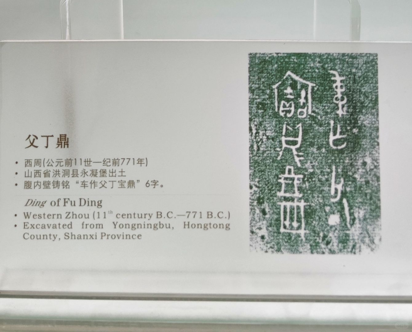 山西博物院藏品“父丁鼎”是一件西周时期的青铜器。它的内壁铸有“车作父丁宝鼎”六个字,属于西周早期的青铜器。这件藏品是山西博物院的珍贵文物之一,具有很高的历史和文化价值。