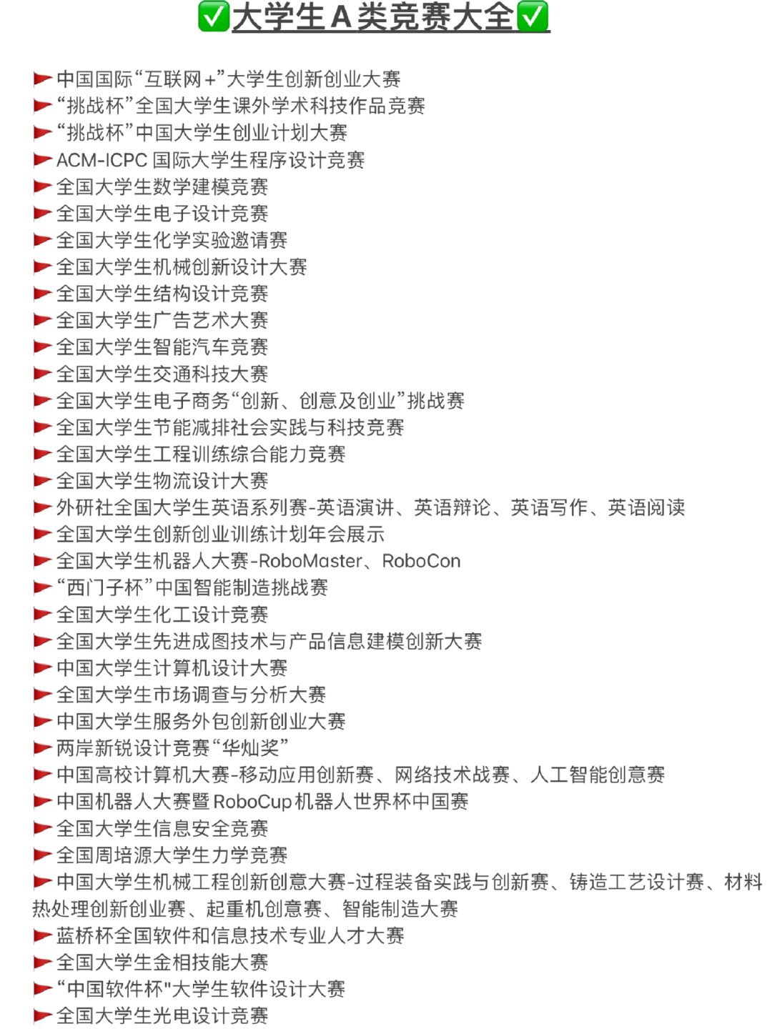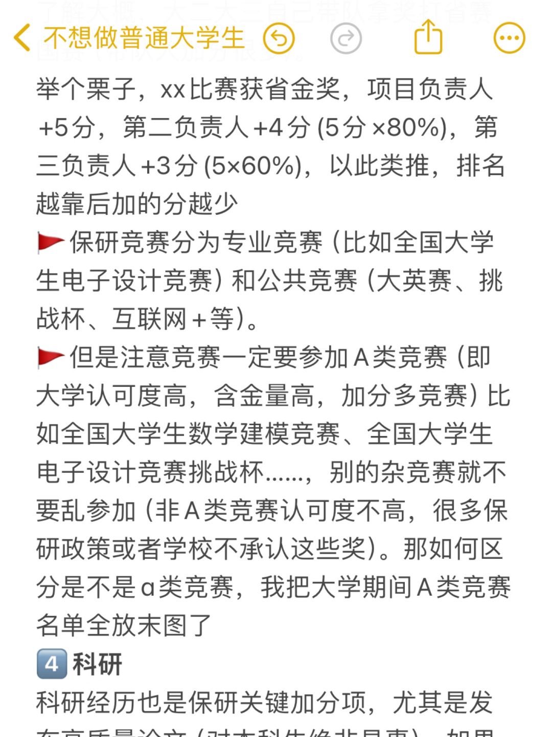 🚩但是注意竞赛一定要参加A类竞赛,别的杂竞赛就不要乱参加(非A类竞赛认可度不高,很多保研政策不认)。……