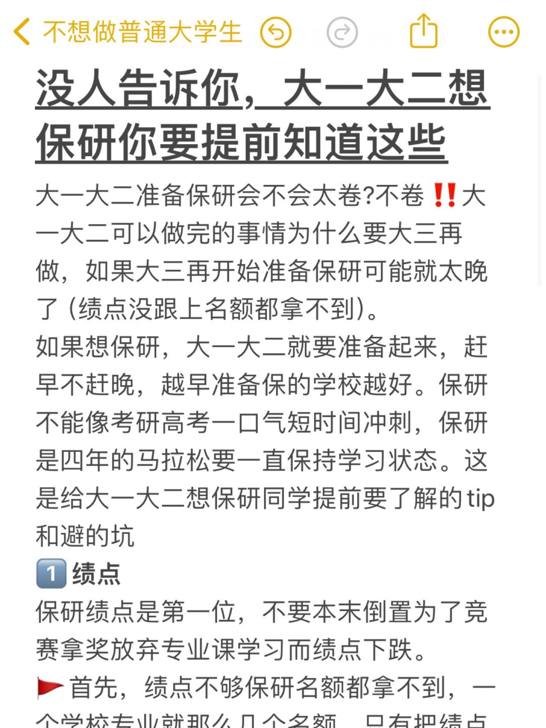 大一大二准备保研会不会太卷?不卷‼️大一大二可以做完的事情为什么要大三再做,如果大三再开始准备保研可能就太晚了(绩点没跟上名额都拿不到)。