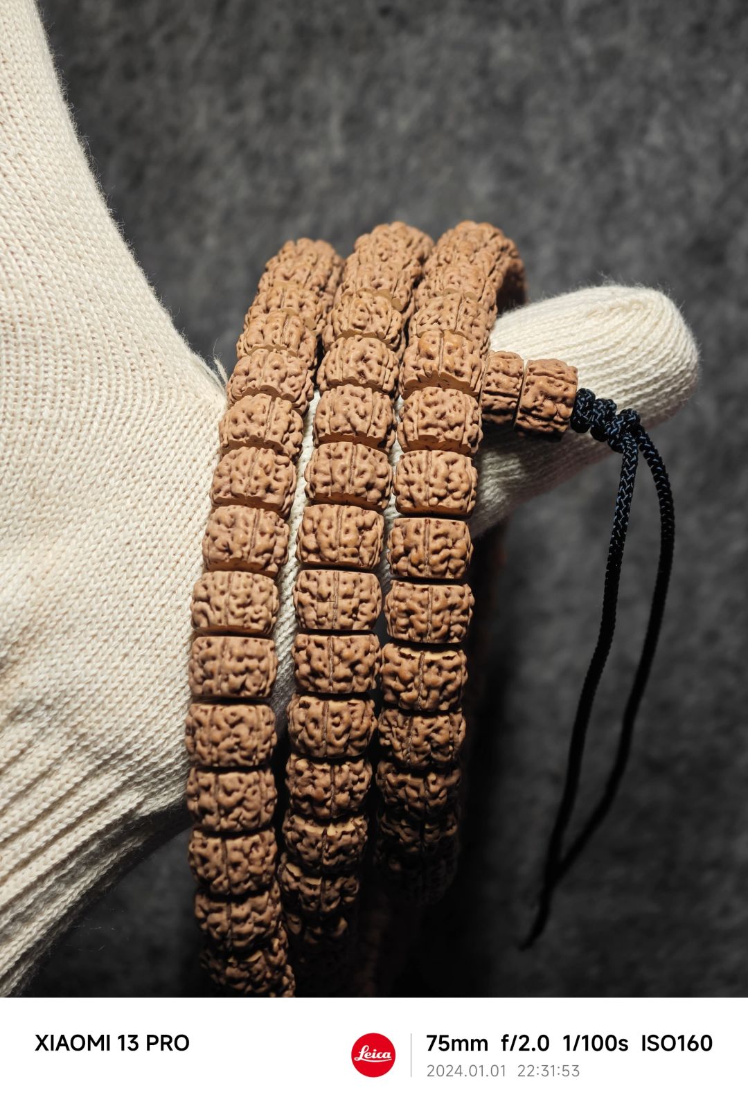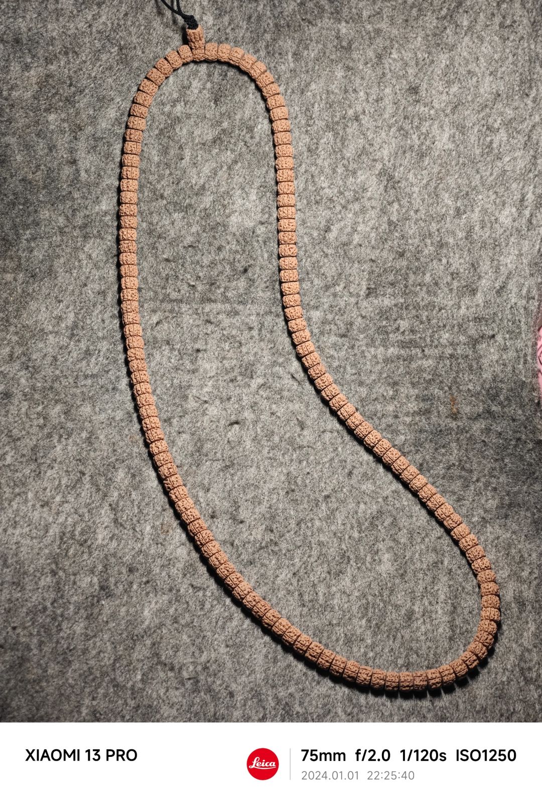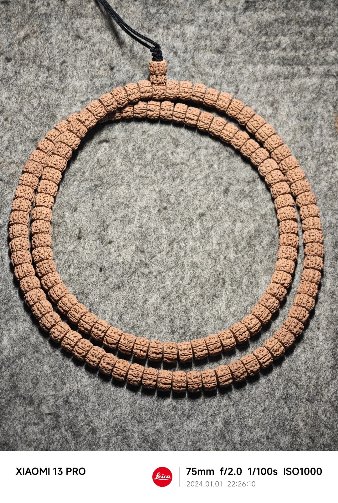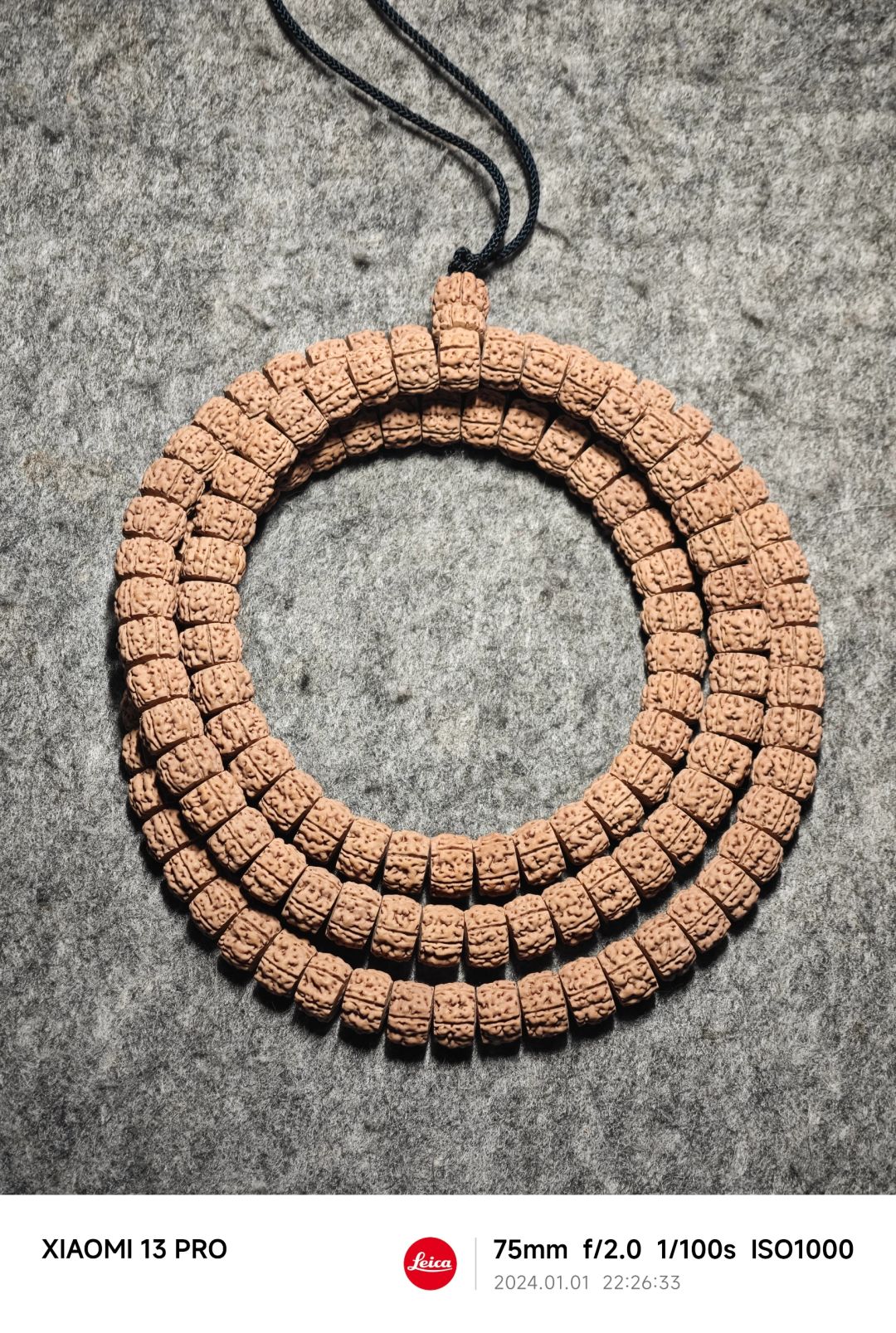 24年开的第一条小金刚菩提长串儿~ 记录一下没盘的样子,后面做对比~ 今年主要就是要把这条玩出来[暗中观察R] 藏式直切,124颗籽,三通3颗,尺寸约12x8mm,带绳重量83.7g。 后续会经常更新这条的变化~