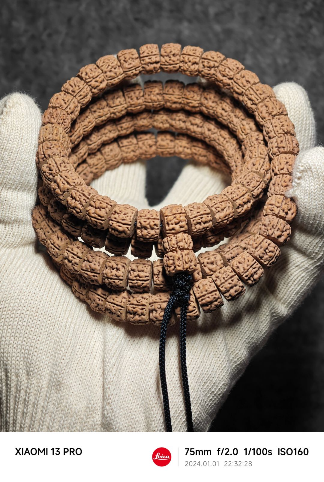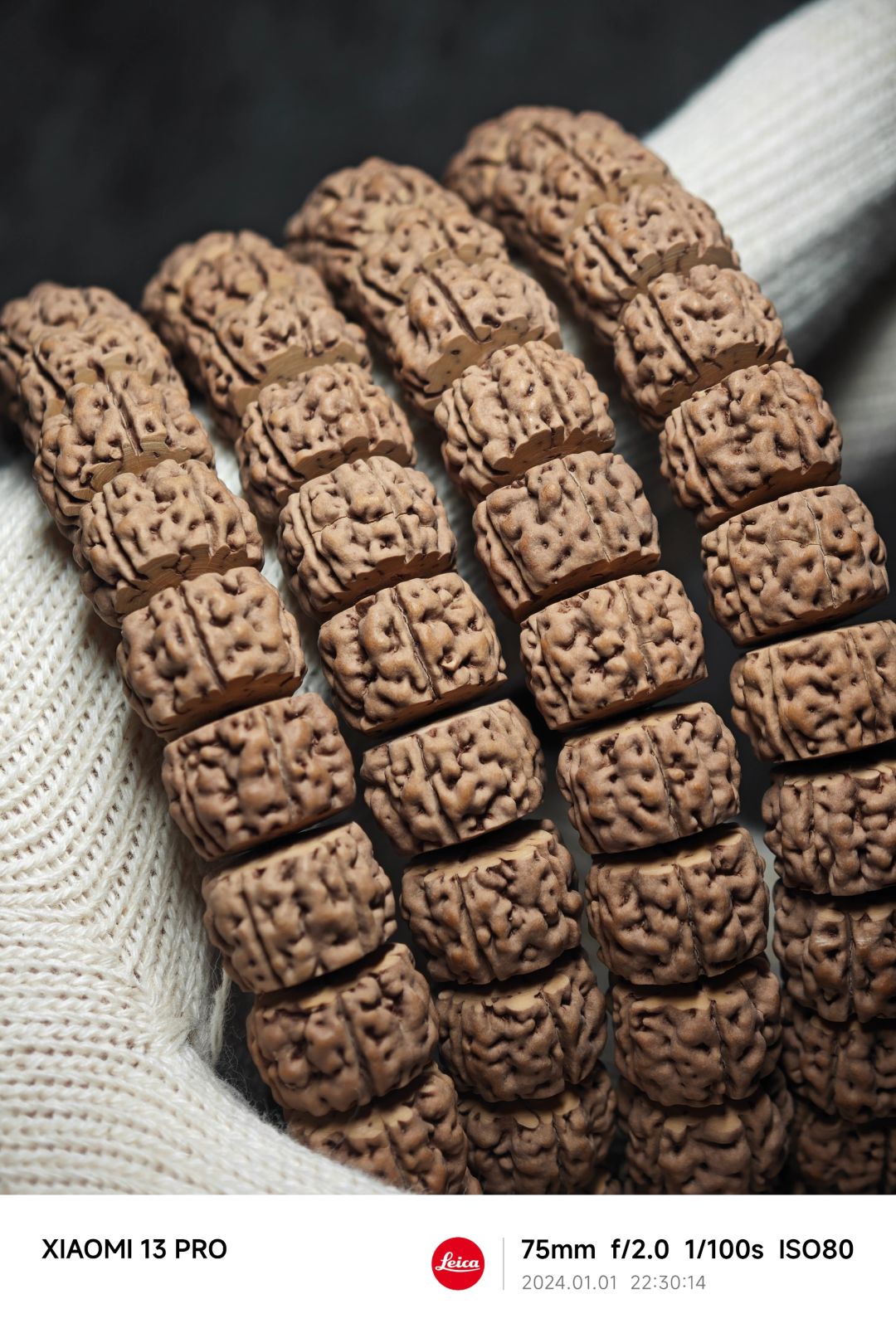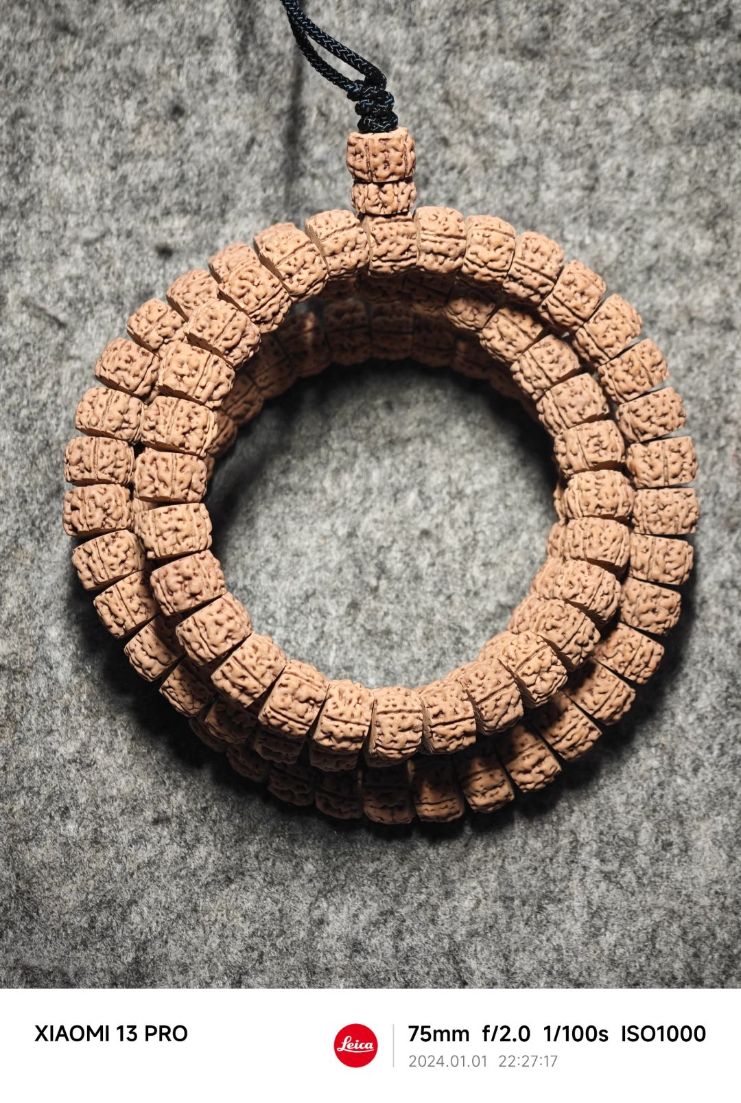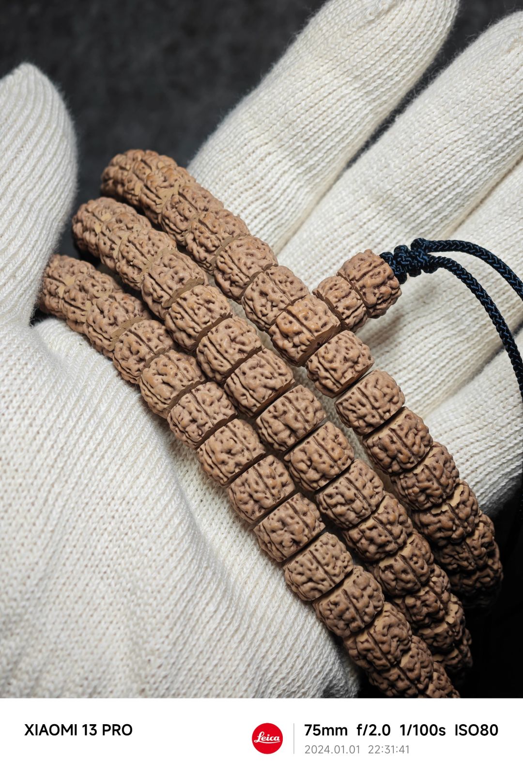 24年开的第一条小金刚菩提长串儿~ 记录一下没盘的样子,后面做对比~ 今年主要就是要把这条玩出来[暗中观察R] 藏式直切,124颗籽,三通3颗,尺寸约12x8mm,带绳重量83.7g。 后续会经常更新这条的变化~