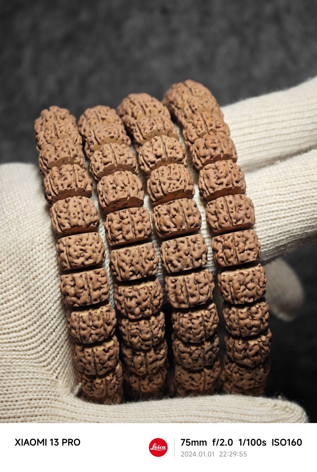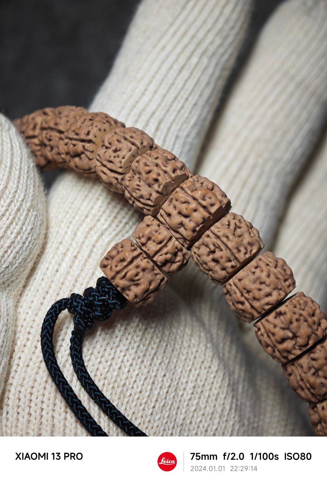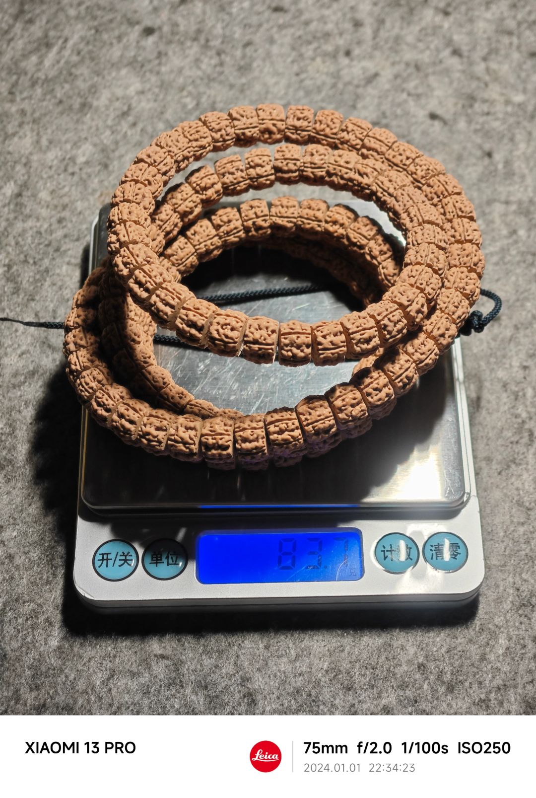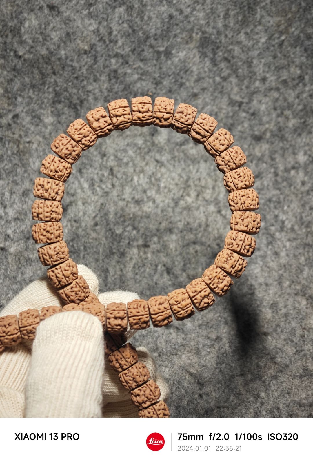 24年开的第一条小金刚菩提长串儿~ 记录一下没盘的样子,后面做对比~ 今年主要就是要把这条玩出来[暗中观察R] 藏式直切,124颗籽,三通3颗,尺寸约12x8mm,带绳重量83.7g。 后续会经常更新这条的变化~