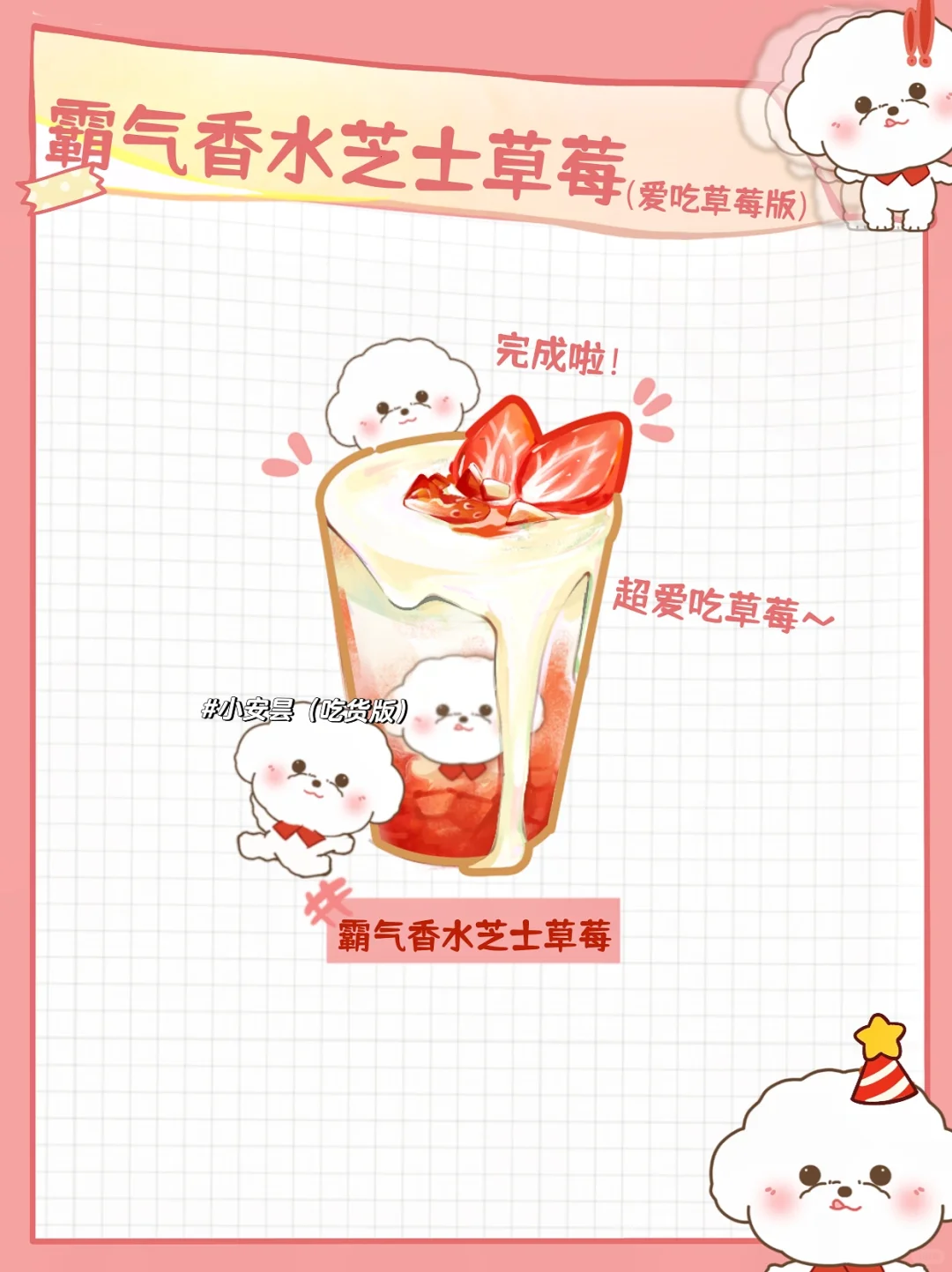 霸气香水芝士草莓🍓(爱吃草莓版) Hey小仙女们✨ 草莓季又来啦!新鲜的草莓炸裂满满,配上香甜的芝士,每一口都是幸福的味道😋 👇开始制作步骤👇 🥣制作步骤 材料准备 草莓🍓➕茉莉初雪茶汤➕芝士奶盖 ➕冰块🧊 🥣制作步骤 1️⃣ 草莓洗干净!切成碎块,放进杯子里 2️⃣现在制作草莓冰沙,将茉莉初雪茶汤,捣碎的红颜草莓和果糖混合打制! 3️⃣在杯子底部放入第一步切好的草莓果粒,再倒入第二步做好的冰沙,最后加上奶盖完成了! 快来感受一下草莓的迷人魅力,一起迎接属于冬季的狂欢吧!🍹🍓