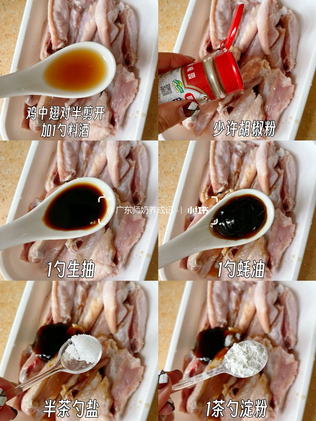 1️⃣鸡翅对半剪开,参考图片腌制20分钟