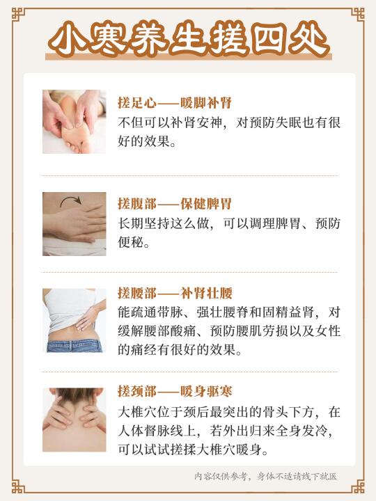 小寒谈气候,俗话说“冷在三九”。“三九”多在1月9日至17日,也恰在小寒节气内。但这只是一般规律,少数年份大寒也可能比小寒冷。 小寒也是旧年近暮,新岁将至的时刻。进入小寒年味渐浓,人们开始忙着写春联、剪窗花,赶集买年画、彩灯、鞭炮、香火等,陆续为春节作准备。今天我们来谈一谈小寒节气养生。