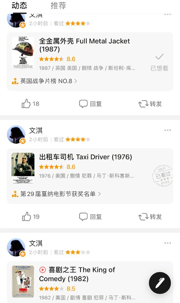 🈶:《猜谜女士》|《重启人生》|《安妮·霍尔》|《战争之王》|《红猪 红の豚》|《龙凤佩》|《全金属外壳》|《出租车司机》|《喜剧之王》(1982)