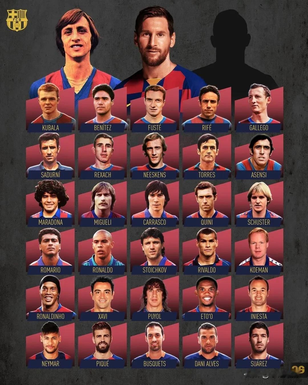巴塞:一梅西,二克鲁伊夫,三小罗。 皇马:一斯蒂法诺,二C罗,三劳尔。