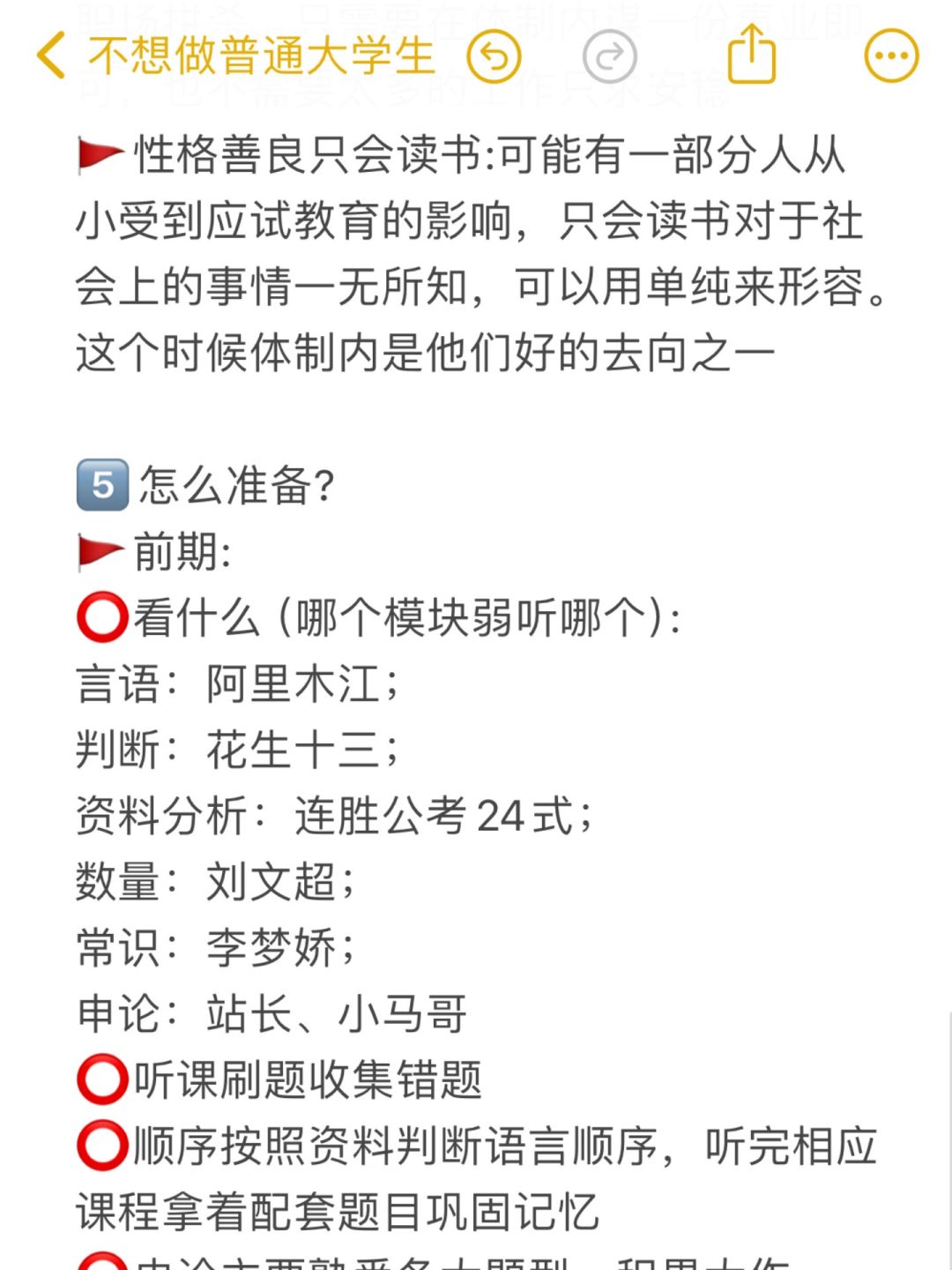 我并不是说越早越准备越好,每个人情况都是不同的。但是我可以这么说,越早了解越好,因为了解的过程你会有很多意外收获比如研究考公过程中就发现原来还有选调生、人才引进、军队文职、西部计划等这些进体制内的机会。而且还有很多人考三五年才上岸,对一部分人我是觉得复习时间越长越好,但有人也说战线时间不要拉太长,但我觉得时间越长越扎实,越能学得好。