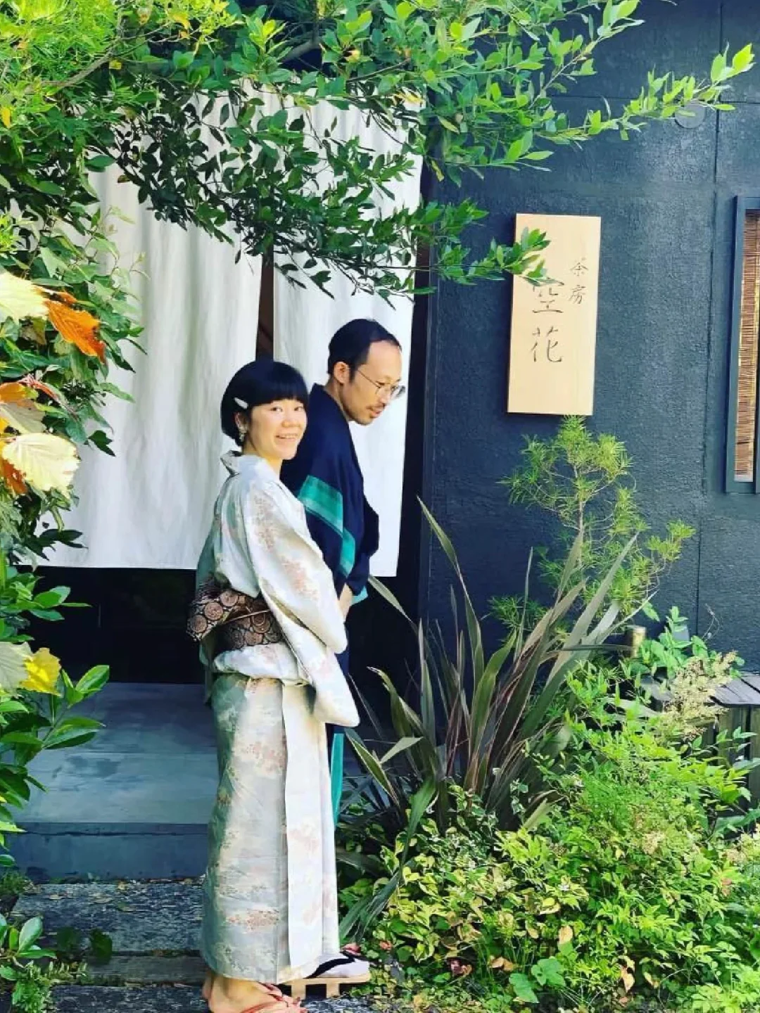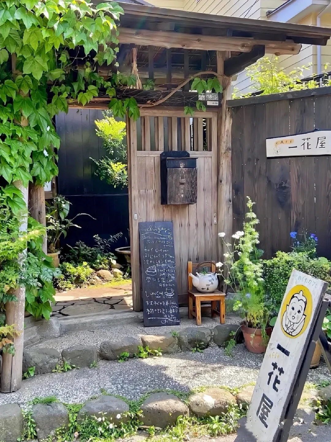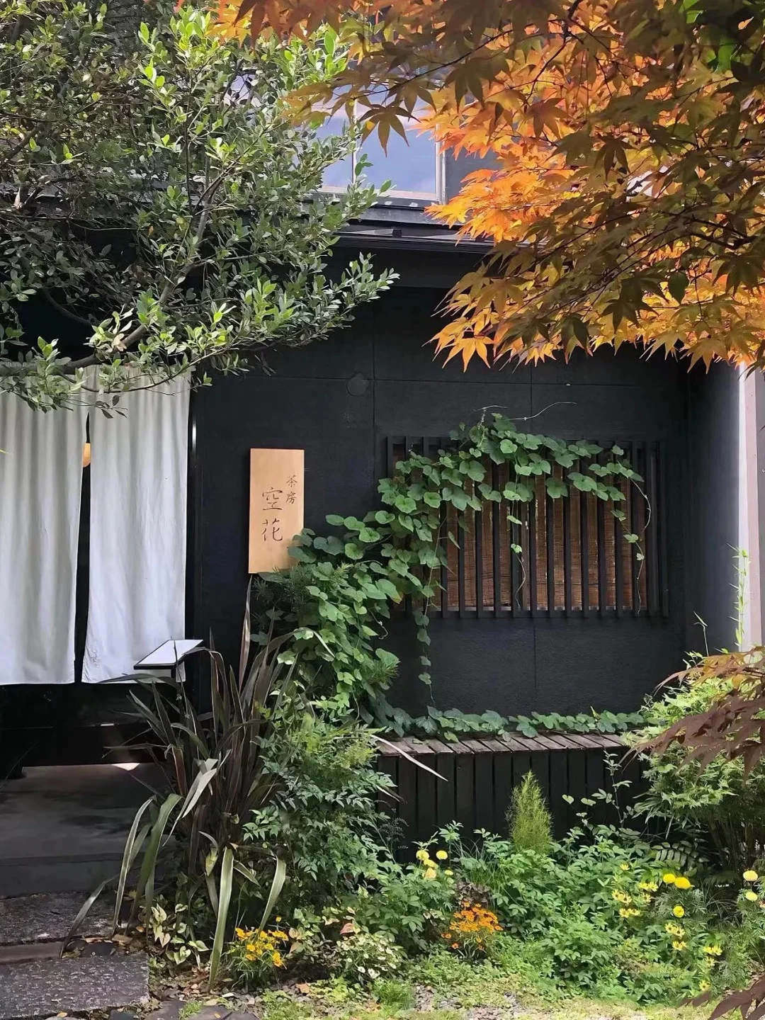 ▪️这家咖啡店位于镰仓传统的日本民宅中,黑色店标牌上写着“花屋”周围被植物围绕