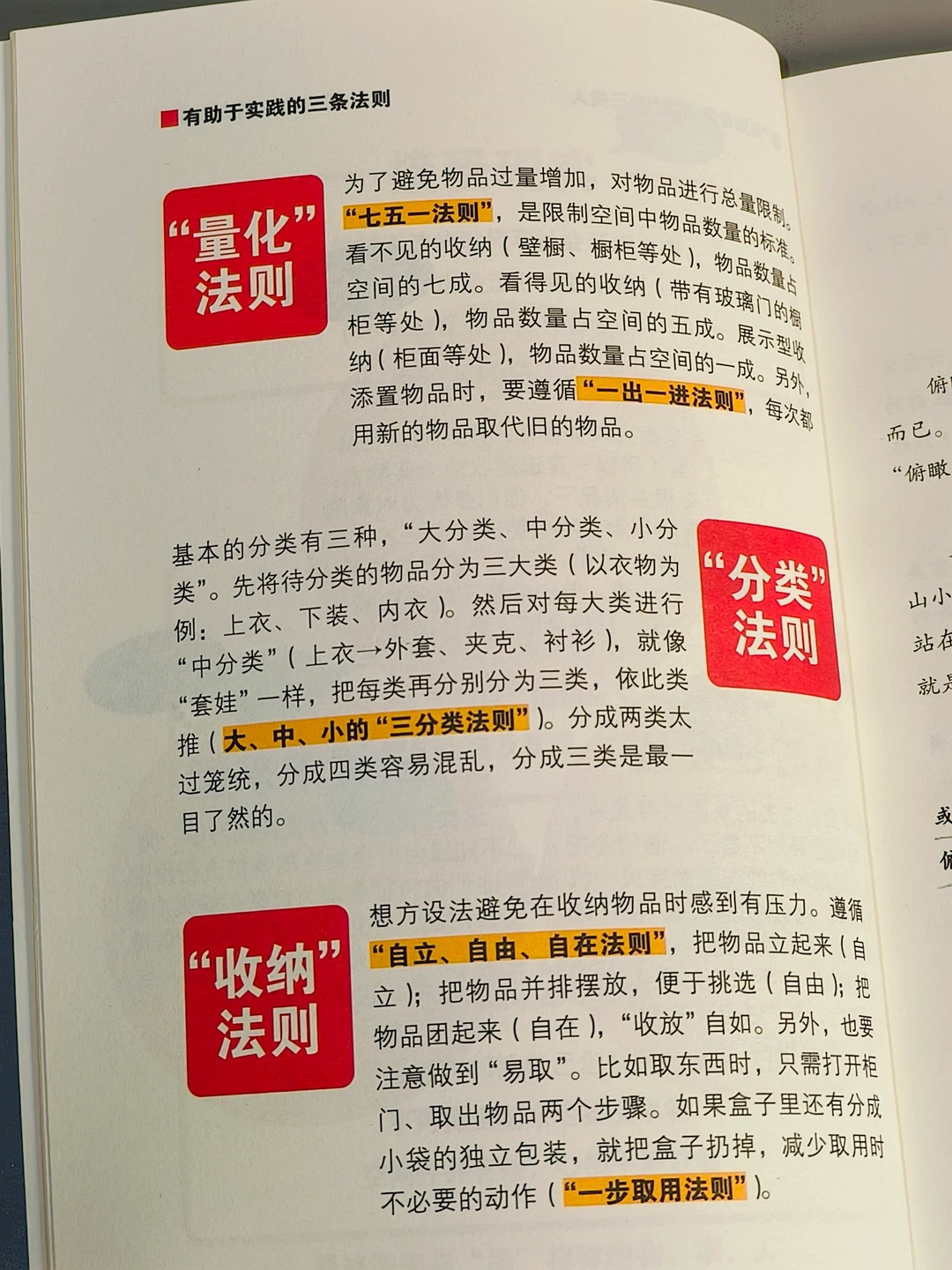 3️⃣收纳法则:想方设法避免在收纳物品时感到有压力,遵循“自立、自由、自在法则”。