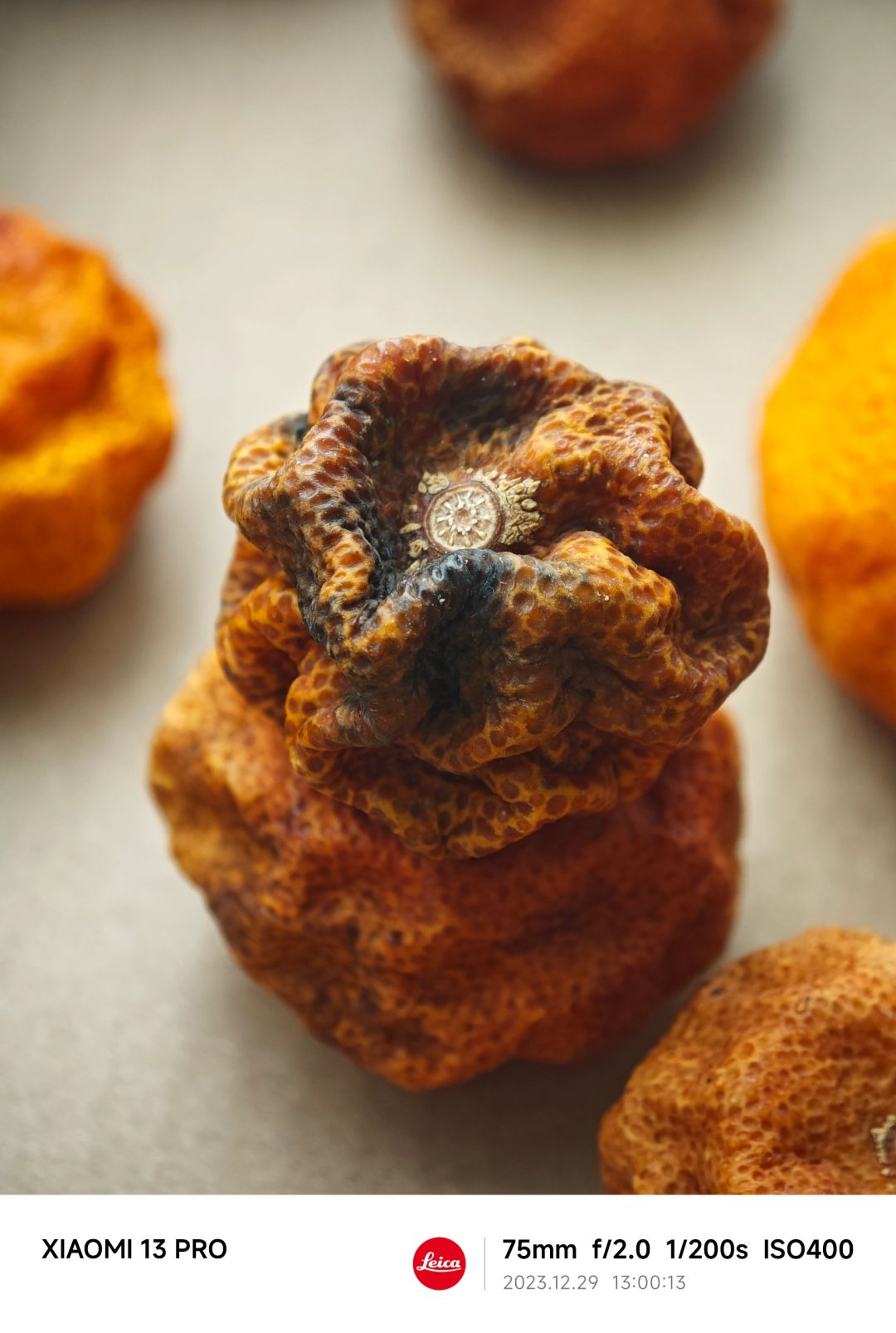 果然强扭的瓜不甜啊,之前自然风干的小橘子还比较光溜,这个空调房强行吹干的,皱巴巴的,品相也不行,本来准备打对的一对也放飞自我了。 好吧,一次失败的尝试,看来不能脱水太快。