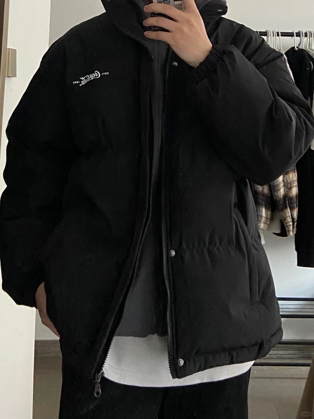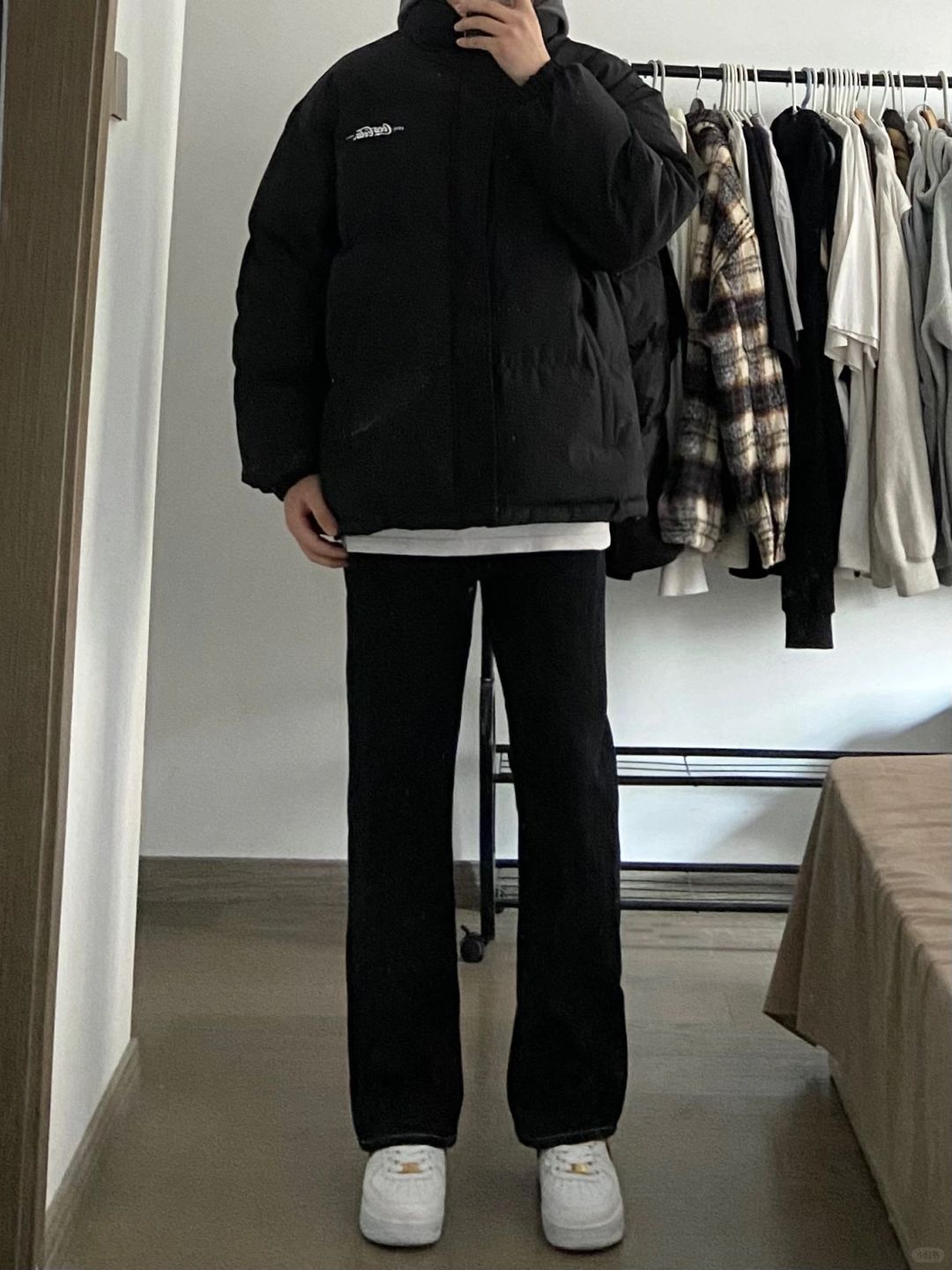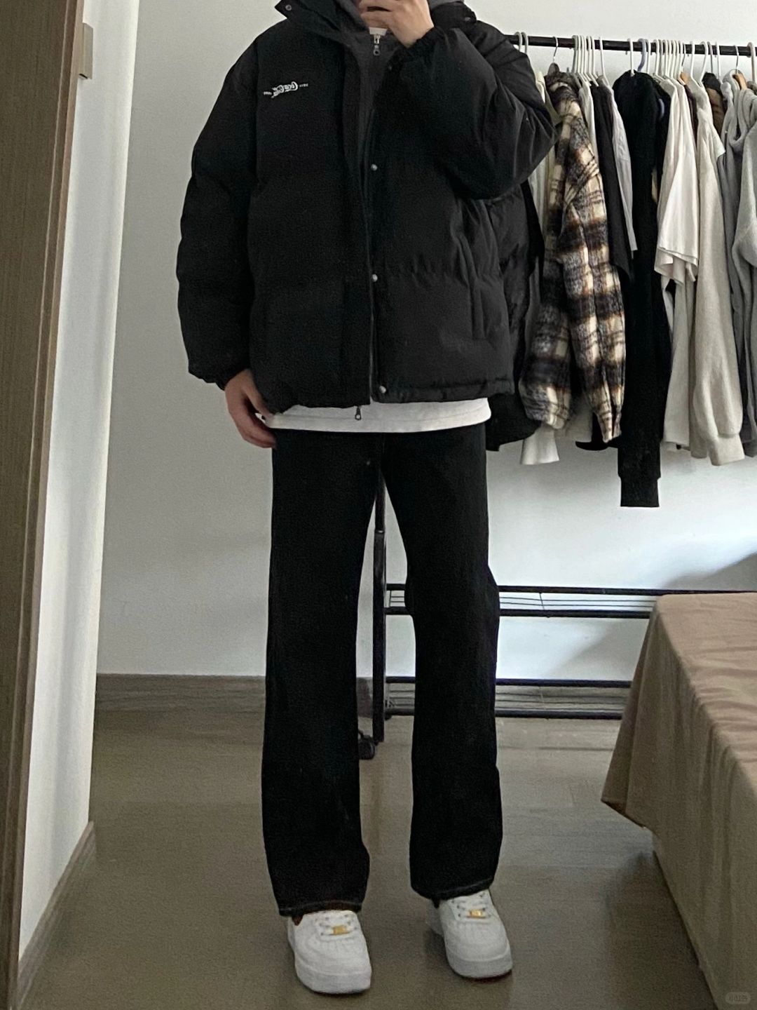 男生冬季穿搭|假两件棉服➕黑色牛仔裤!