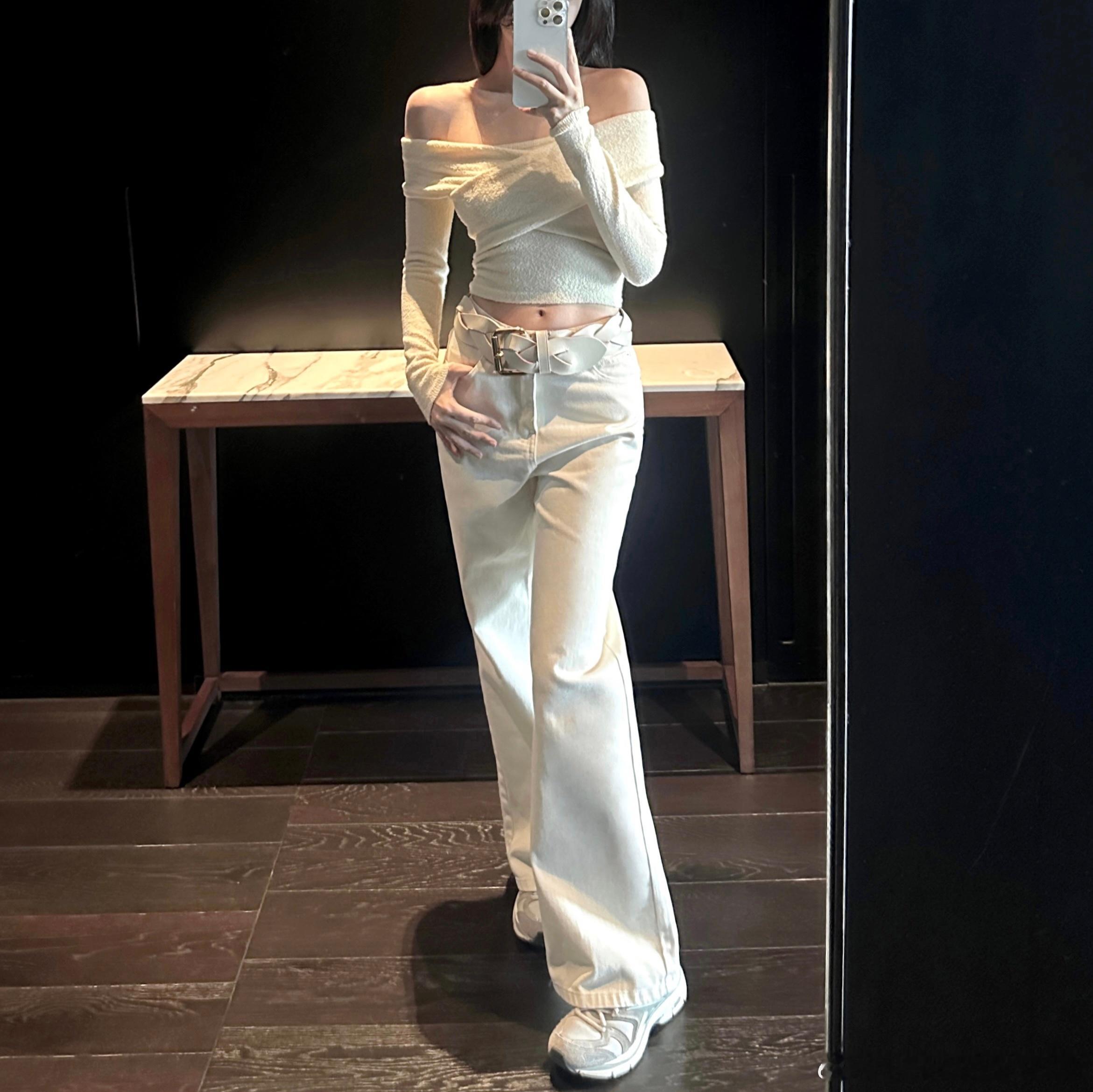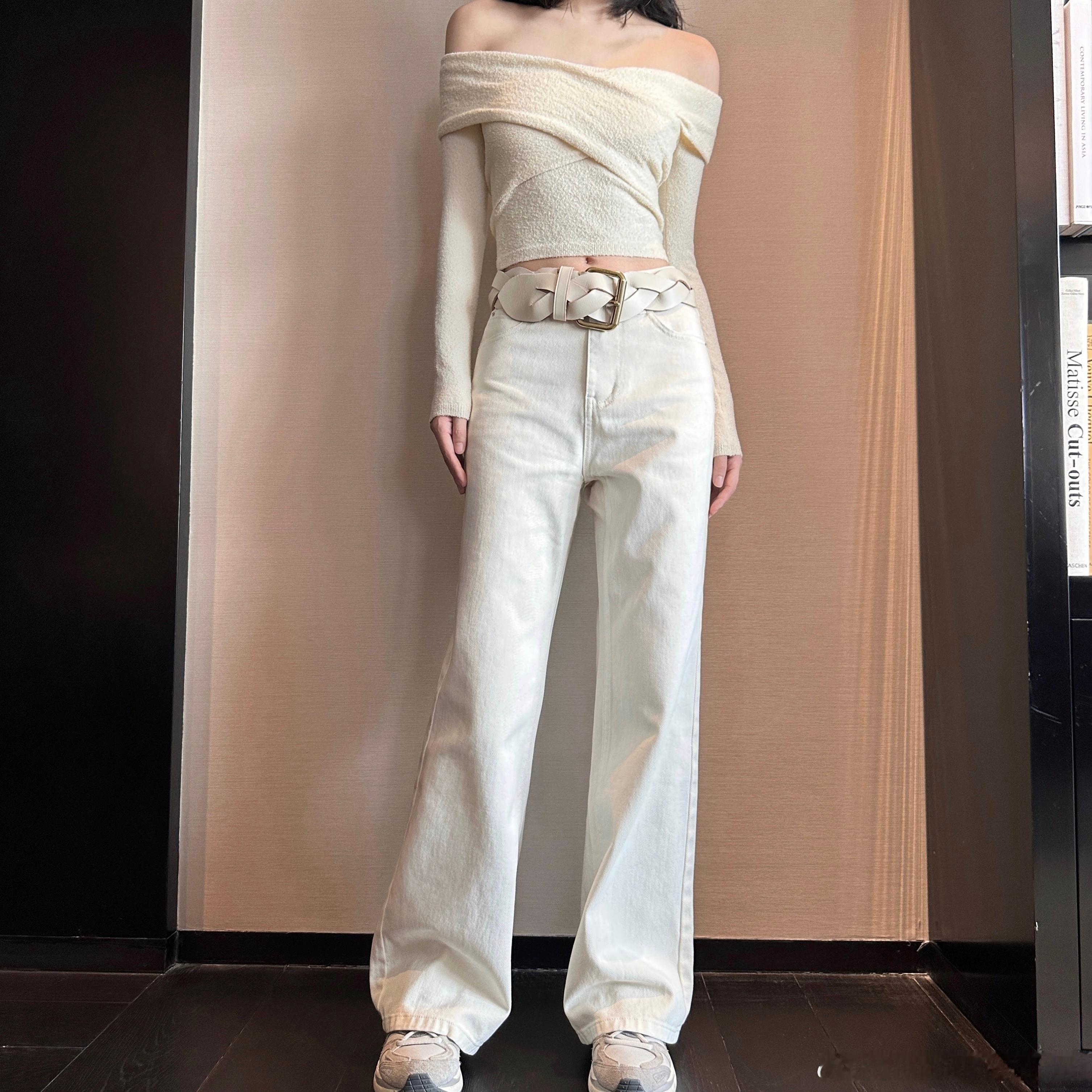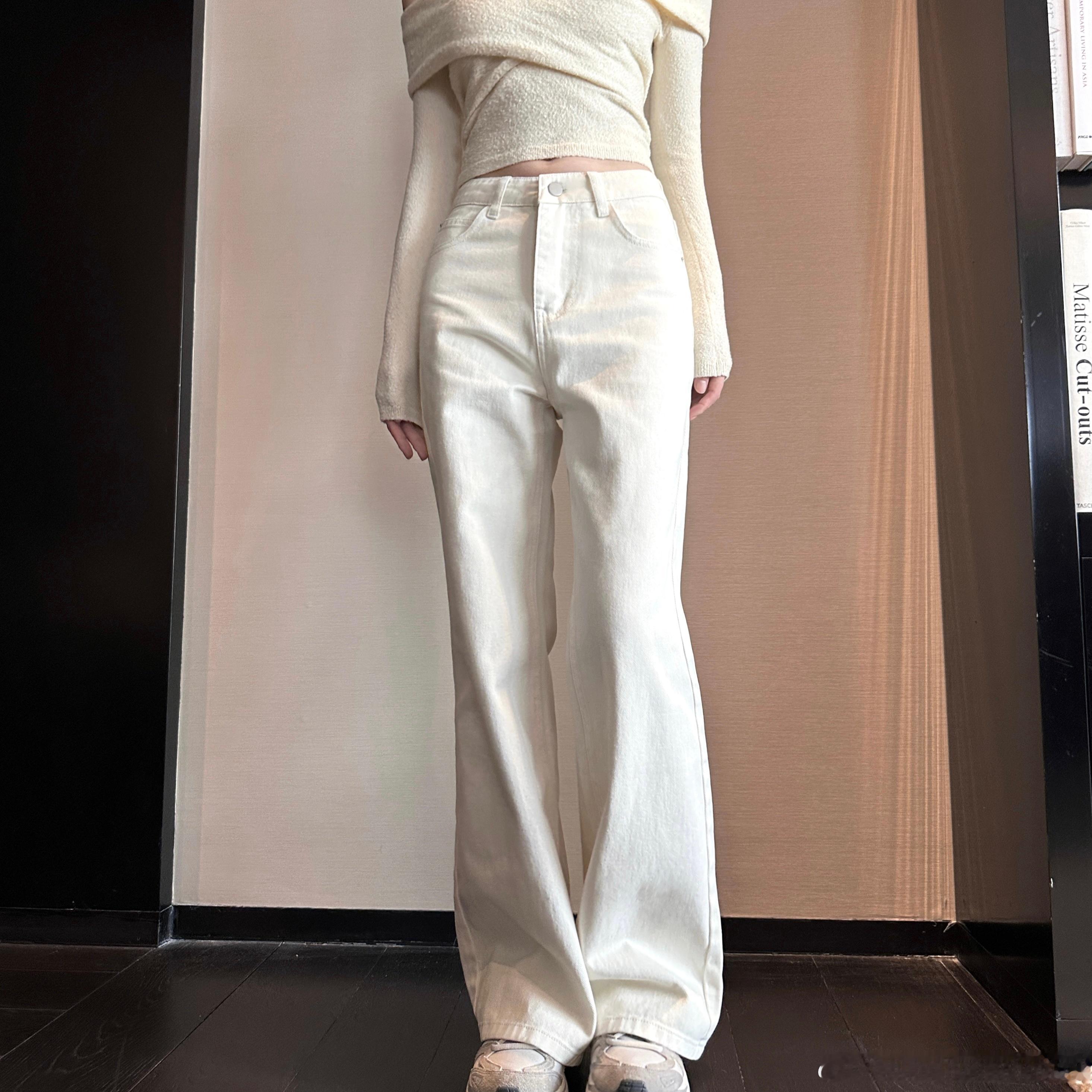 纯纯的本白色斜纹牛仔裤 加了2%的氨纶 手感上比纯棉的会更柔软些 穿着舒适度高