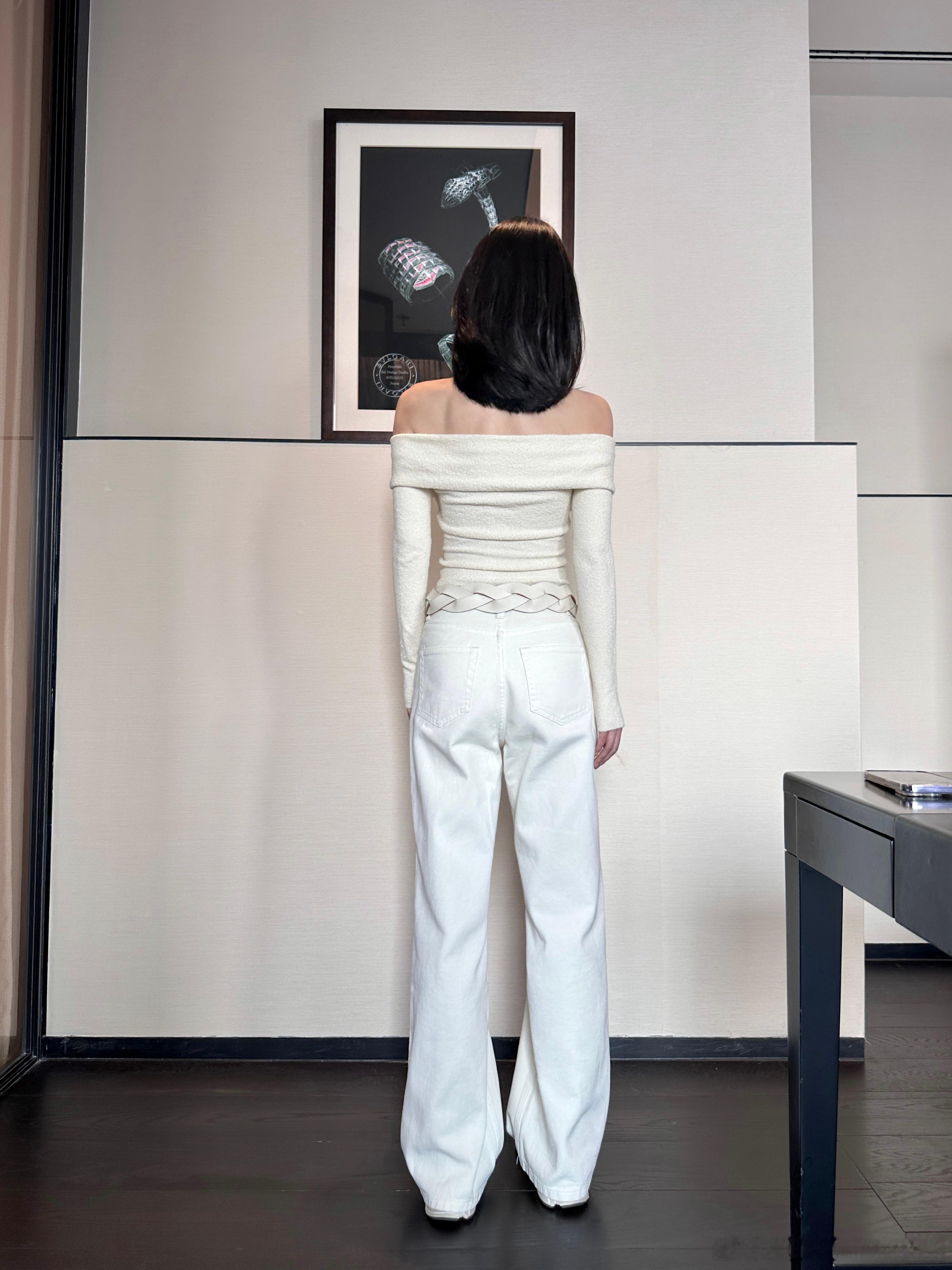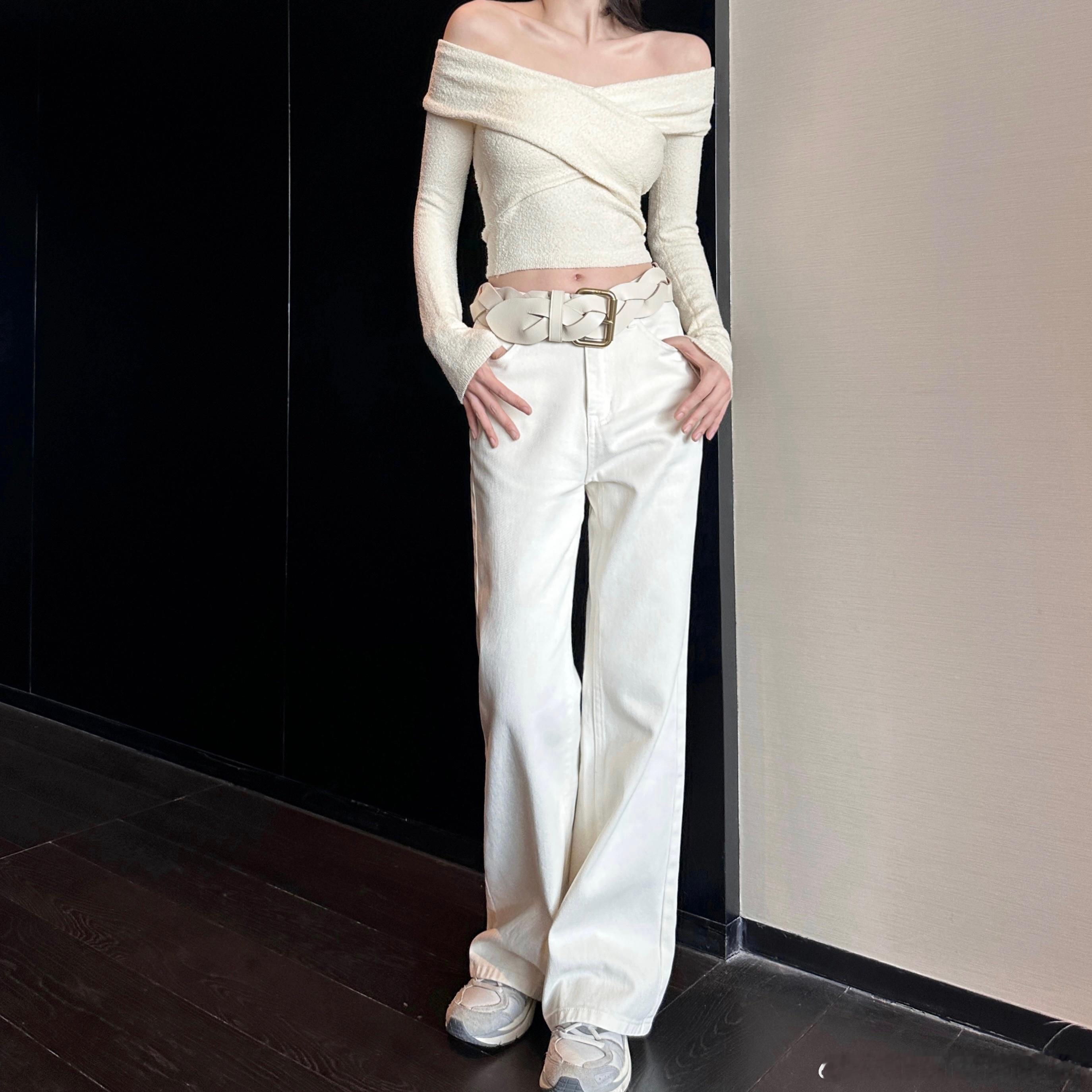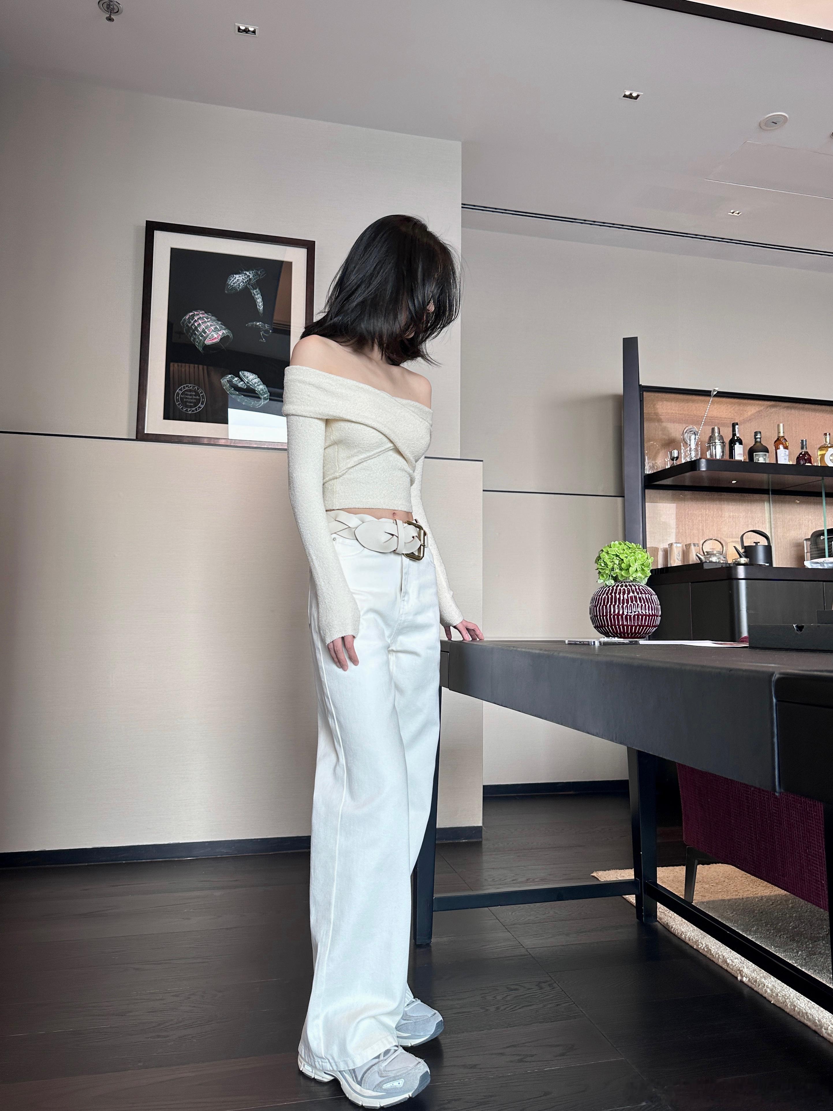 纯纯的本白色斜纹牛仔裤 加了2%的氨纶 手感上比纯棉的会更柔软些 穿着舒适度高