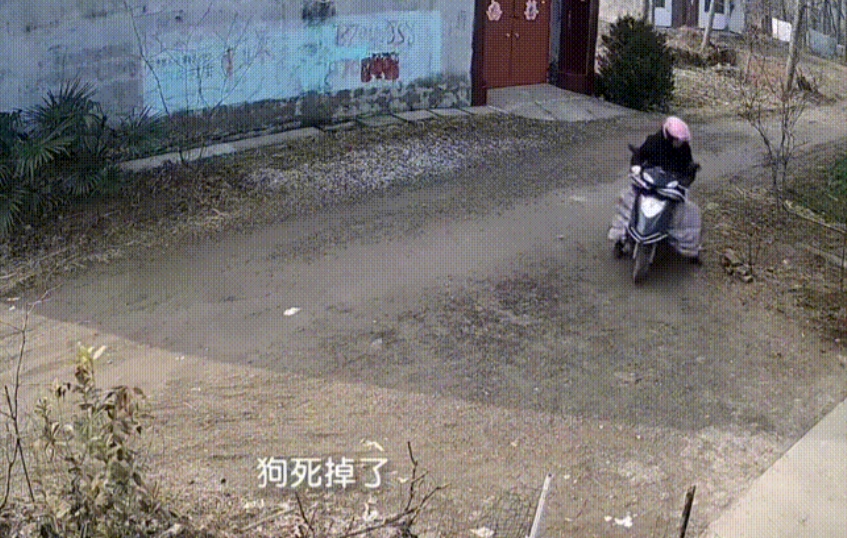 1月13日10时49分,一名戴着头盔、骑着摩托车的男子从雷先生家附近经过时,雷先生家的两条狗狗因见是陌生人,于是追着男子摩托车后面一路奔跑。
