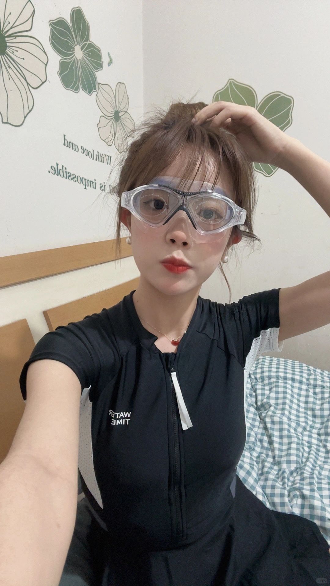 这幅颜值天花板泳镜可好看了 贴合面部不漏水也不勒脸 泳衣也很适合我 保守又显瘦