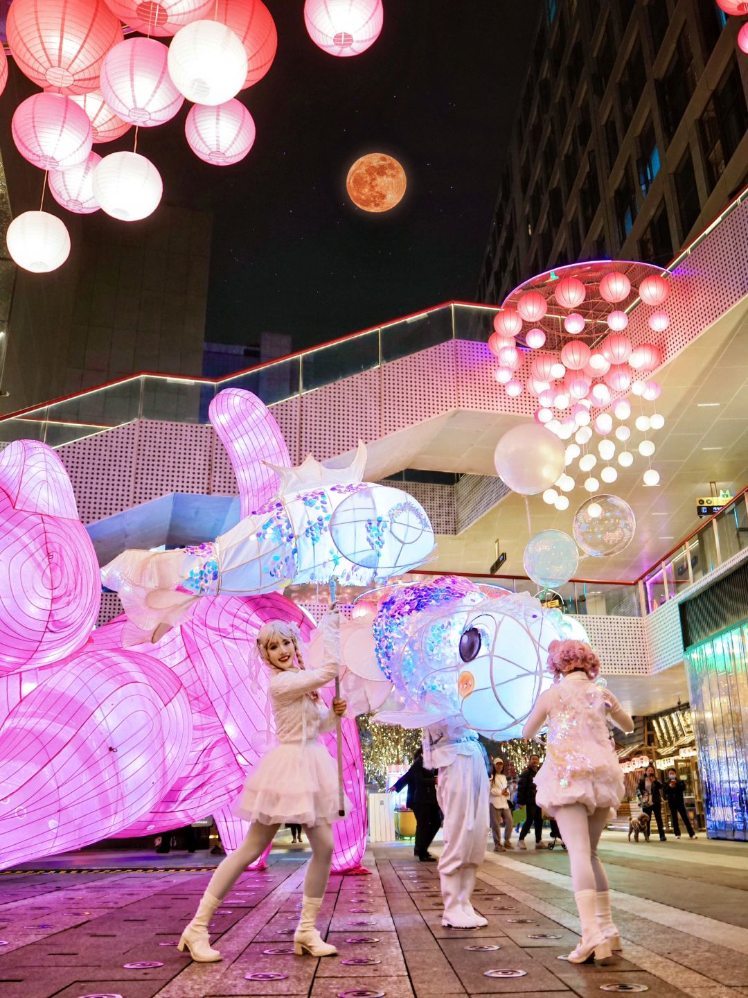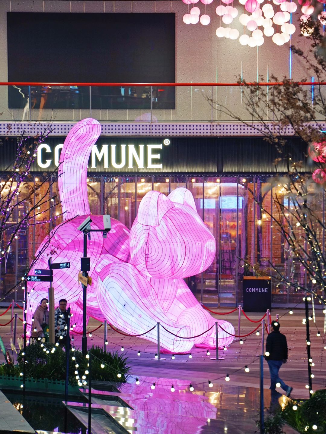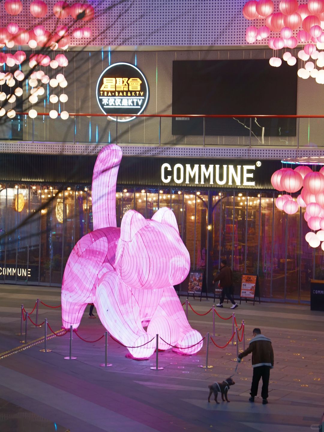 1、巨型彩灯猫在 武侯星悦荟的一楼喷泉广场