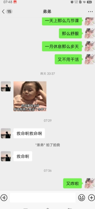 你有没有最怕收到某个人的信息? 我最怕的就是收到我弟的信息,还有我爸的信息 因为每次我弟和我联系聊天都是哭诉,说穷,日子难过,没有钱,最近几天又跟我说,不想过年,没有钱,上次还叫我借几百块给他,还叫我借信用卡,今早又给我发信息说 救命啊救命,我看见这种信息,说实话我都不敢回他,肯定又是关于钱,我也没钱啊。打工苦命的日子,只够开销的,还有负数,我自己都自身难保。我的爸爸也是一样,很少联系,也不会关心我,我最怕他突然来信息关心我,一般突然关心我,后面就是叫我给钱。我就最害怕他们的信息了。