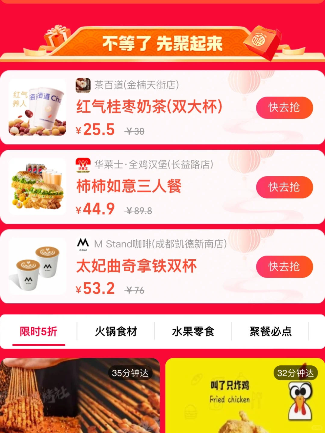 不想等,要立刻喝?🌟上饿了么今天就过年