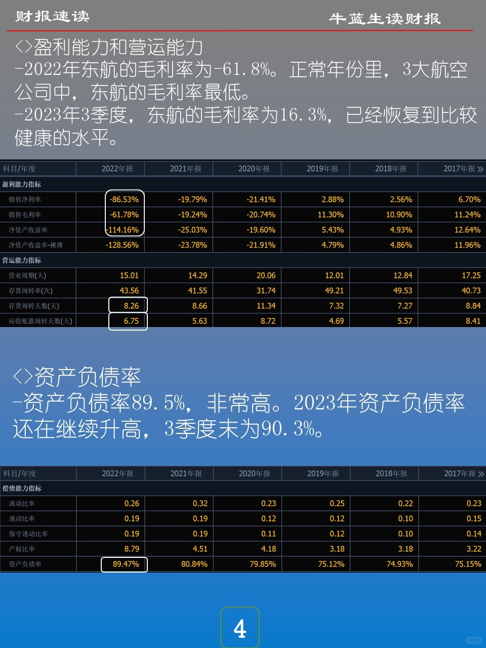-2022年东航的毛利率为-61.8%。正常年份里,3大航空公司中,东航的毛利率最低。