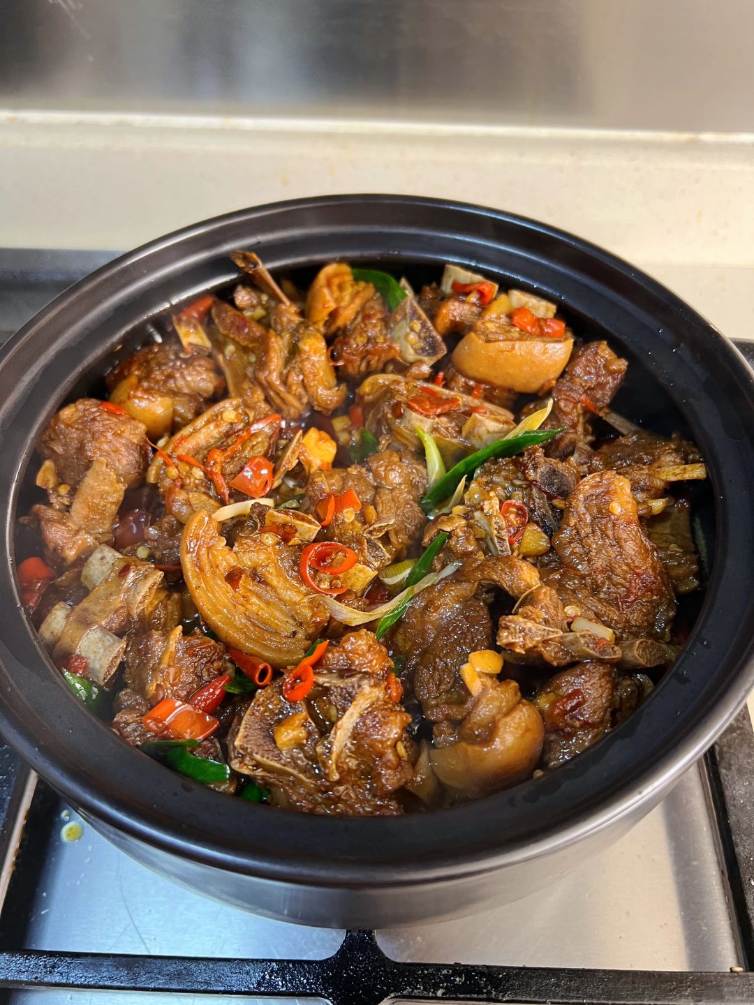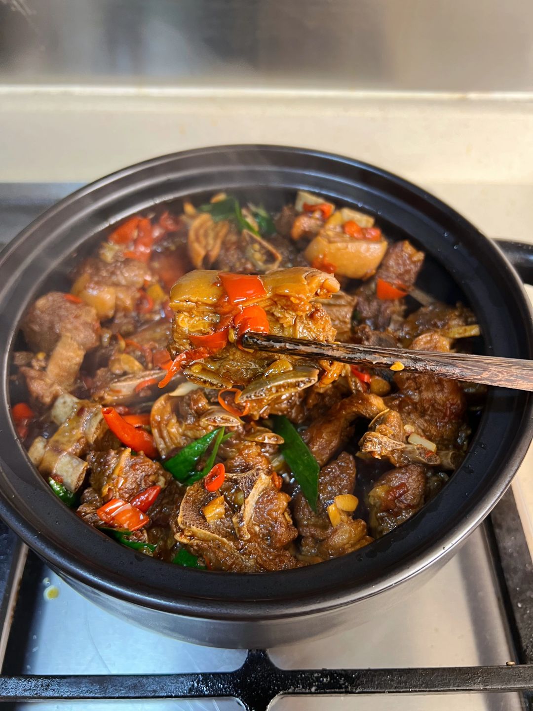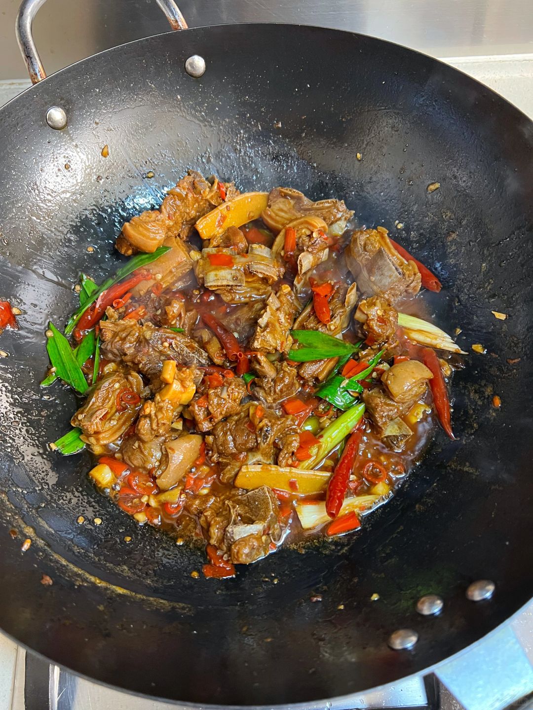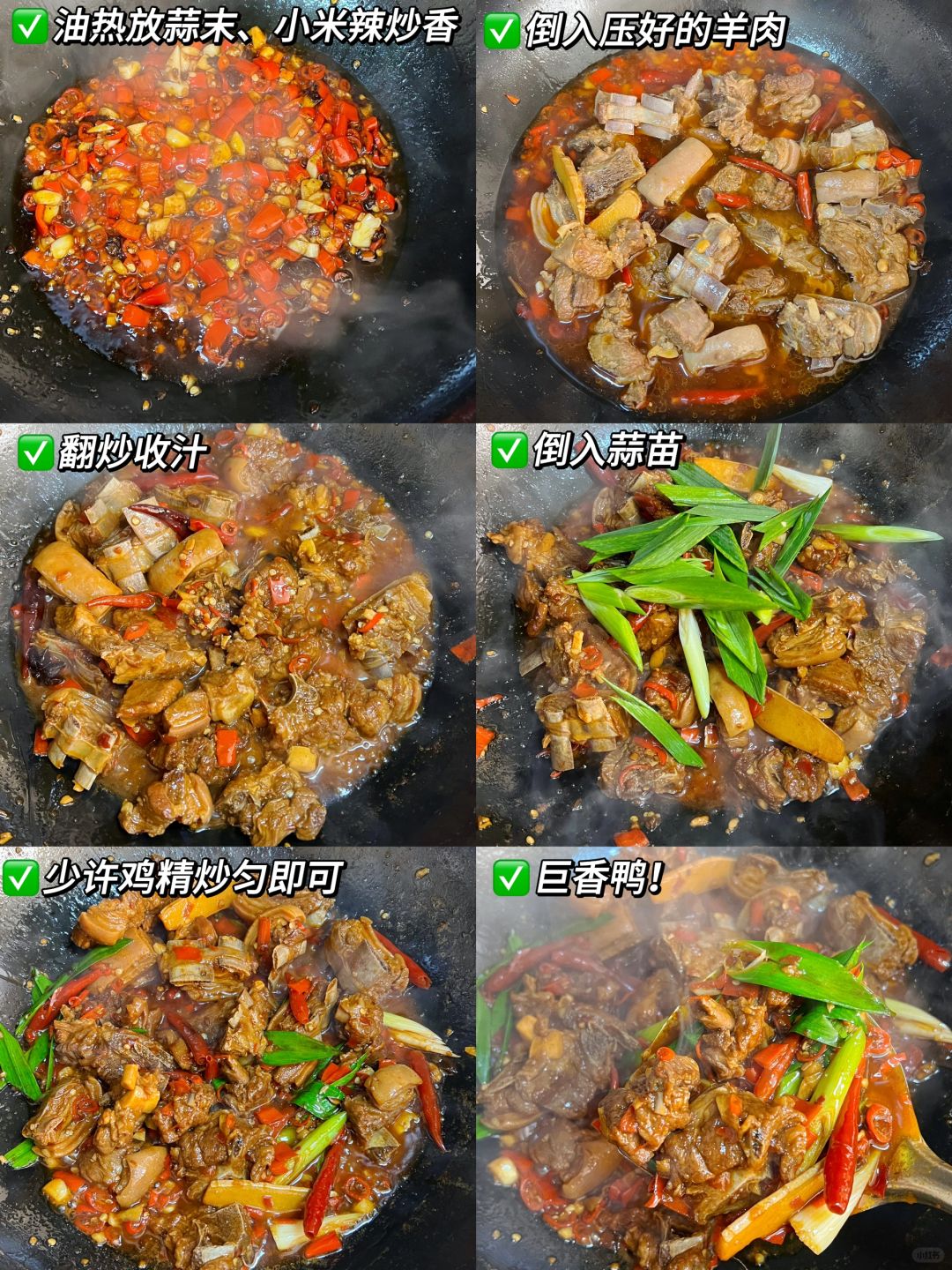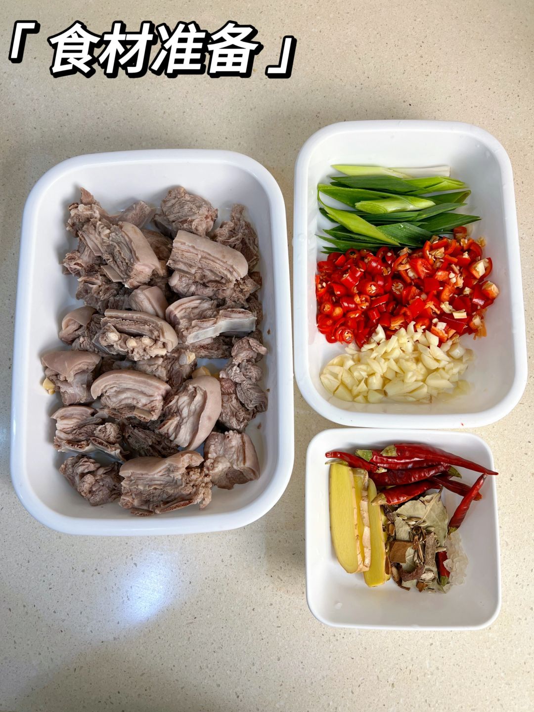 🍀食材:羊肉、葱姜蒜、八角桂皮香味、干辣椒、小米辣;