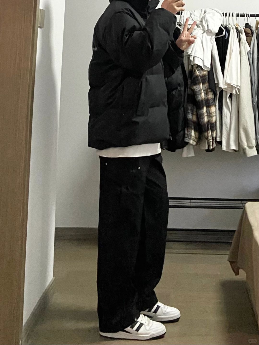 男生冬季穿搭|黑色基础棉服➕黑色工装裤!