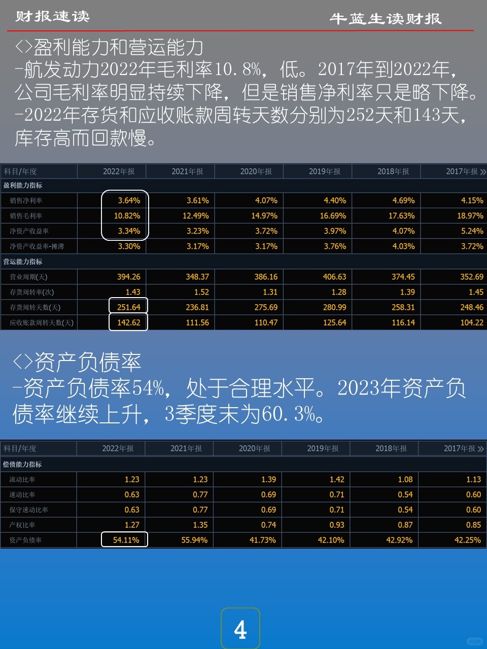 -航发动力2022年毛利率10.8%,低。2017年到2022年,公司毛利率明显持续下降,但是销售净利率只是略下降。