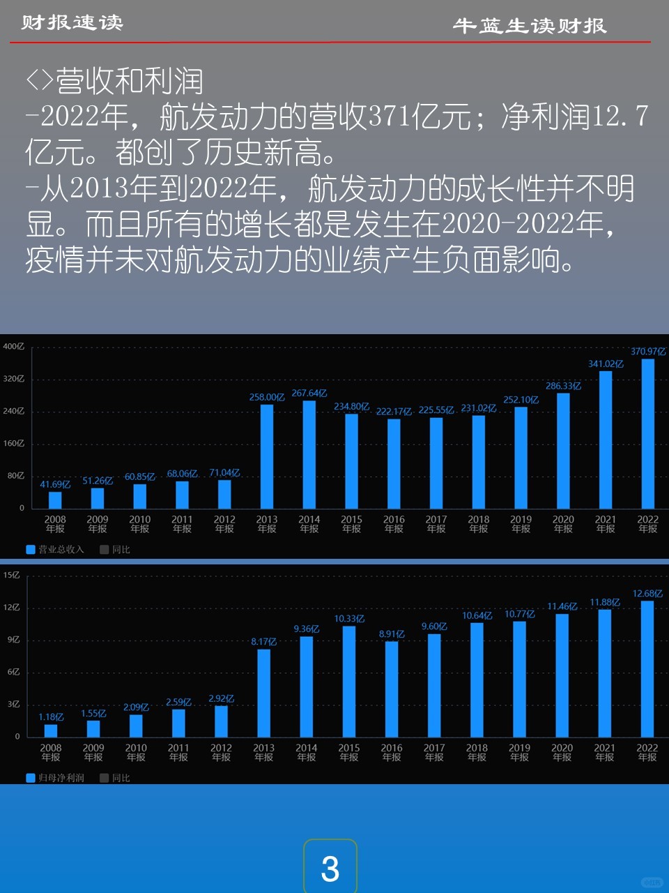 -2022年,航发动力的营收371亿元;净利润12.7亿元。都创了历史新高。