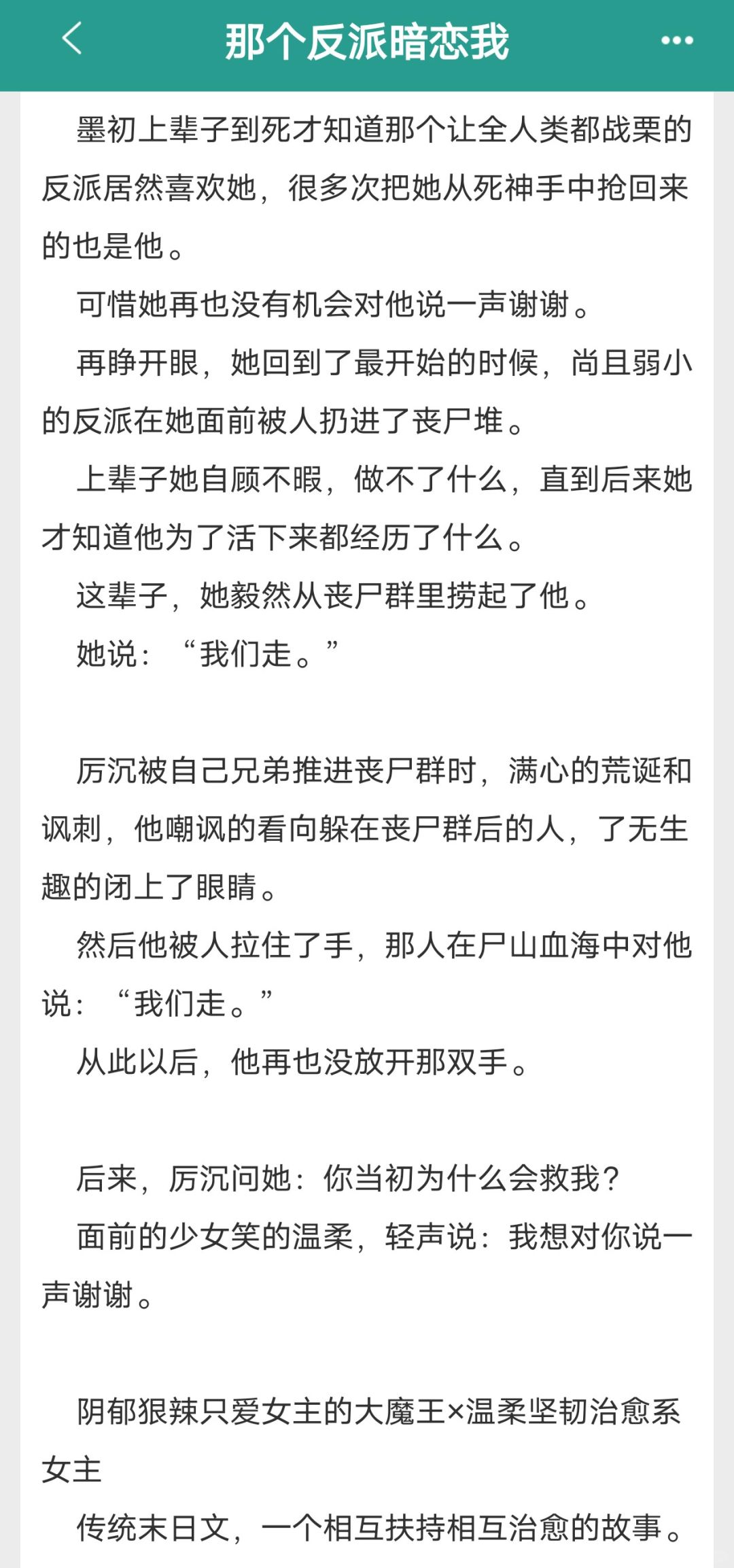 墨初上辈子到死才知道那个让全人类都战栗的反派居然喜欢她,很多次把她从死神手中抢回来的也是他。