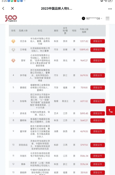 董宇辉又获奖了, 排名第9位, 就是俞老师又要不开心了。