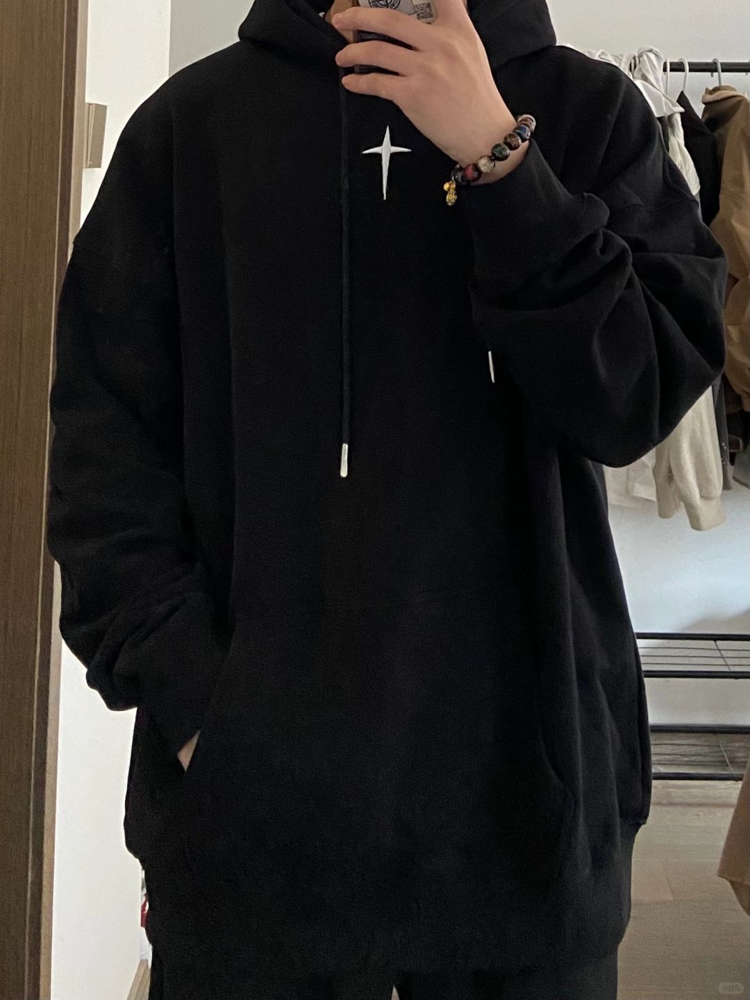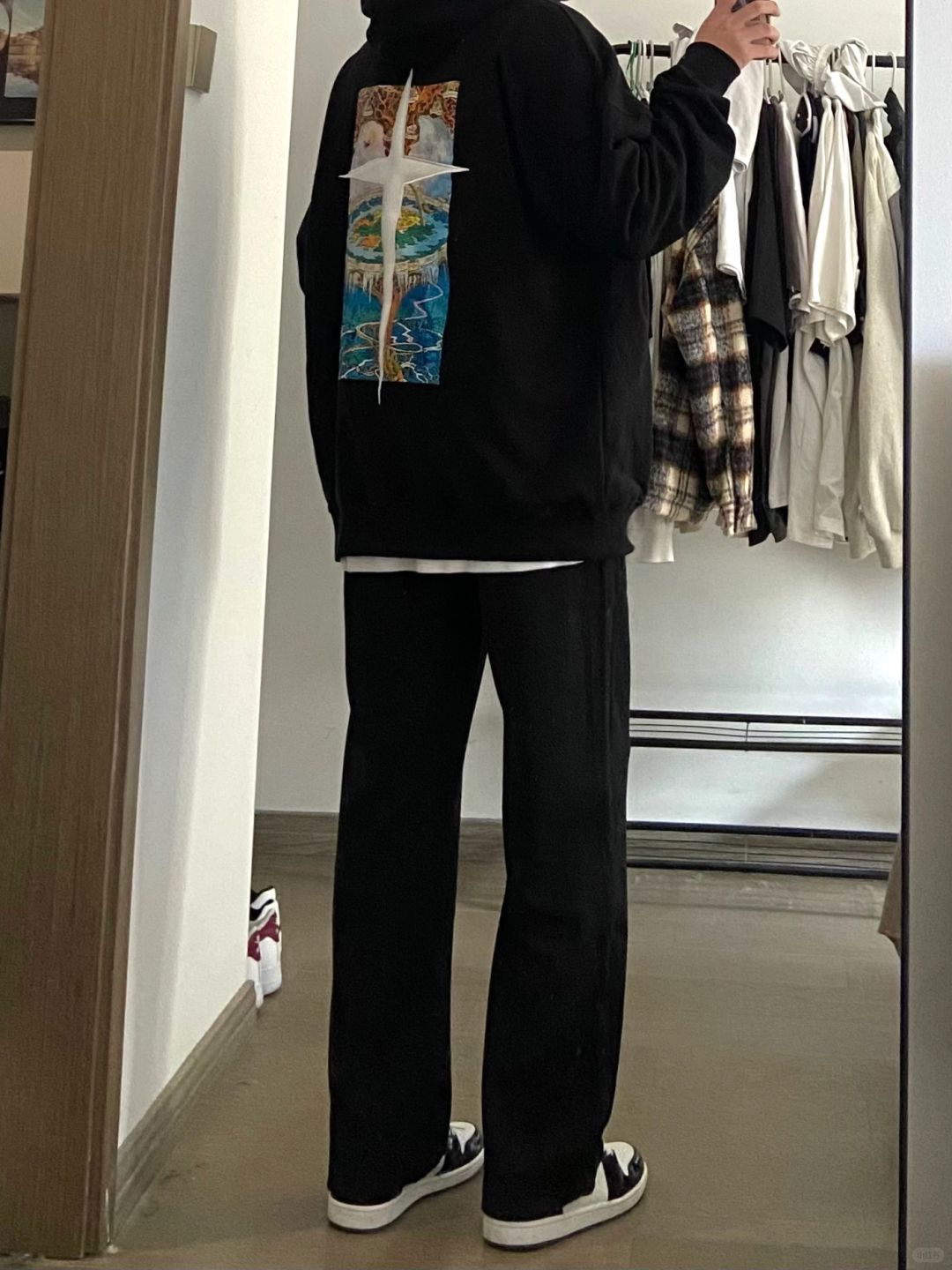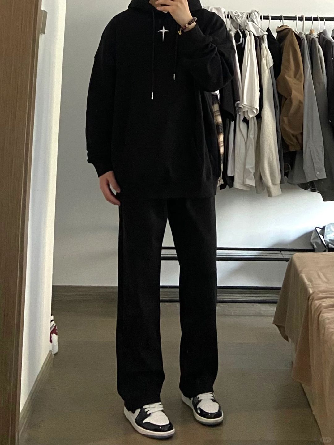 男生早春穿搭|黑色连帽卫衣➕黑色休闲裤!