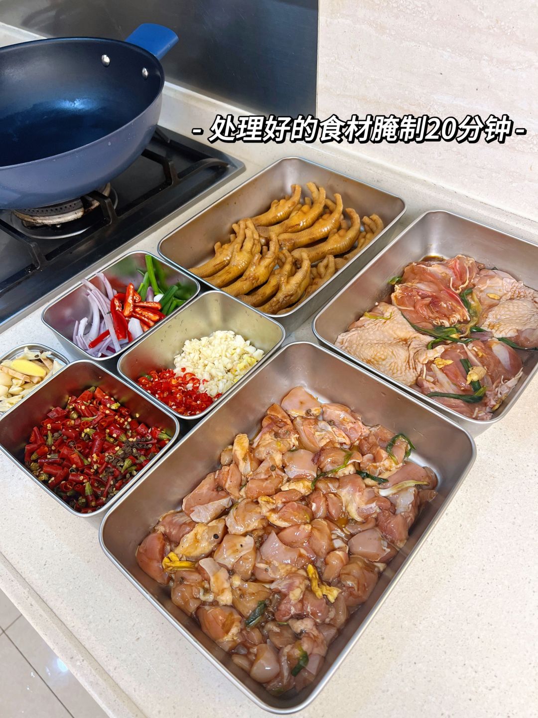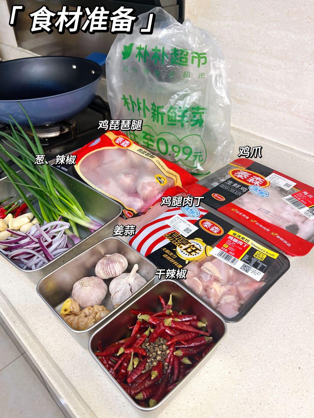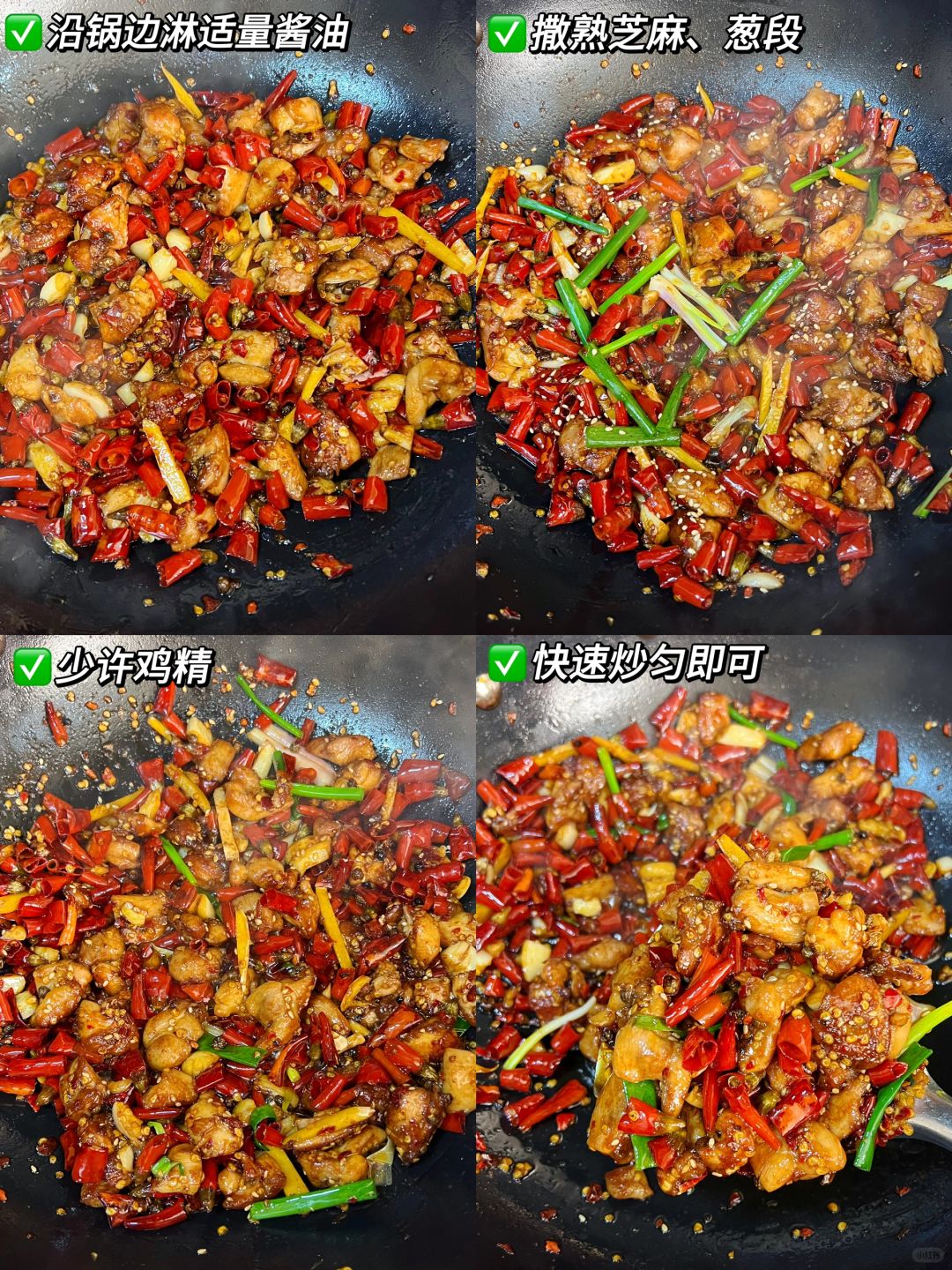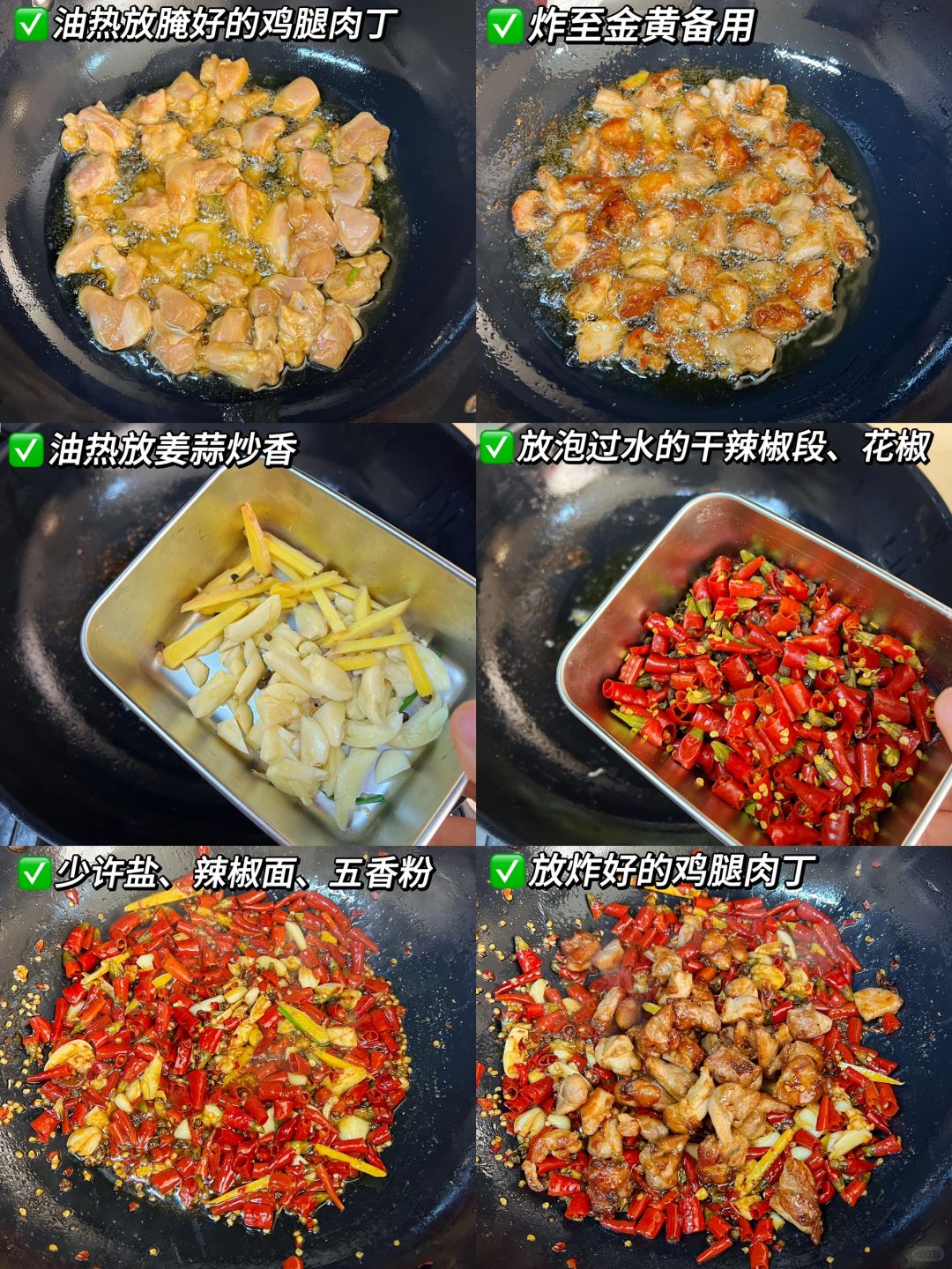🍀食材:鸡腿肉丁、葱姜蒜、干辣椒、花椒、芝麻;