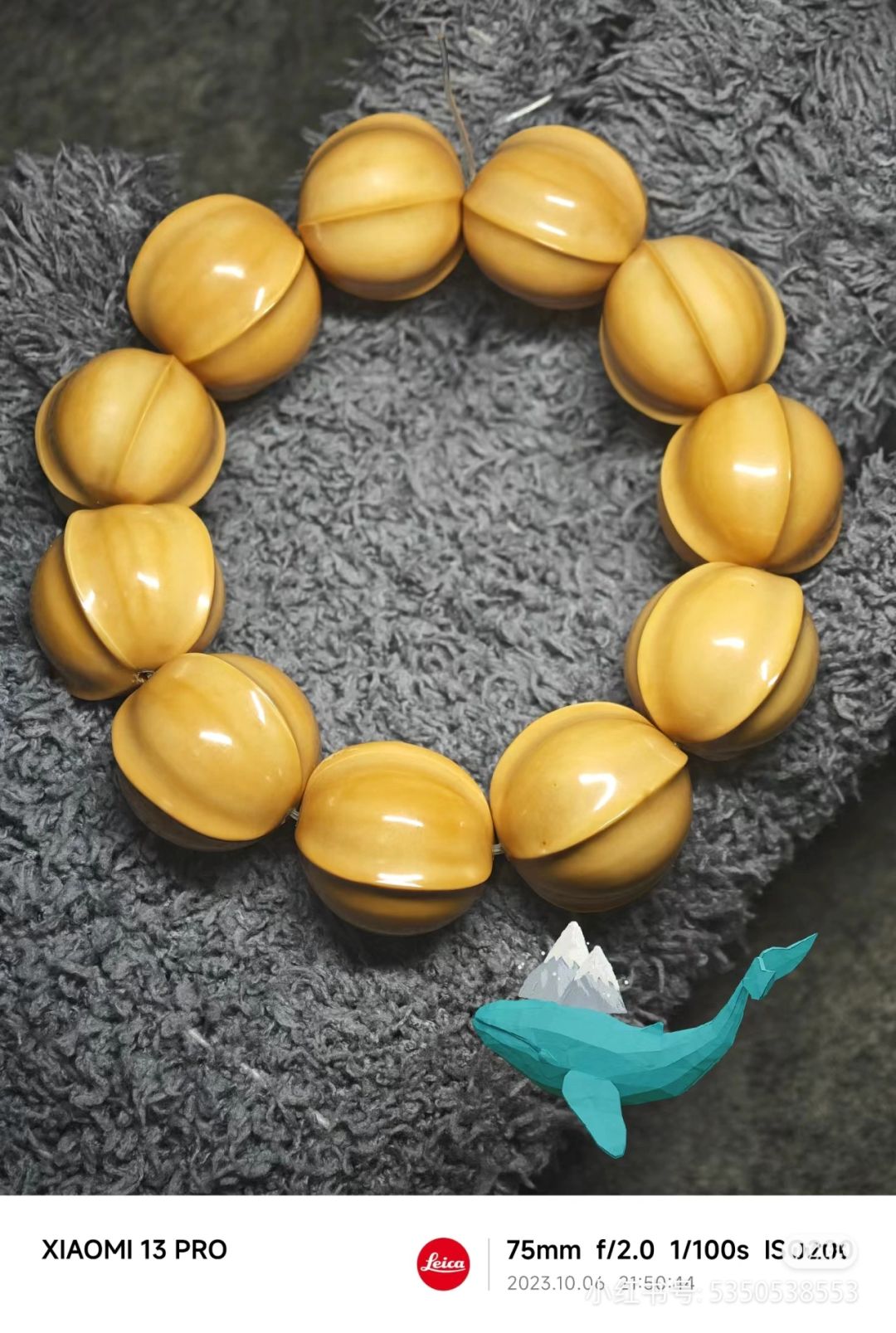 超大猴头鲨鱼鳍,买了仨月,玩了一月,偶尔戴戴,就说变色了没吧[偷笑R] 顺嘴提一句,我是一直把手机照片的水印开着的,这样方便记录盘玩时间,挺好