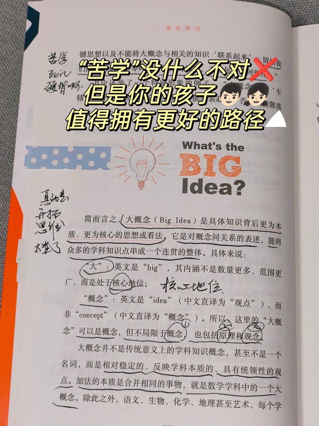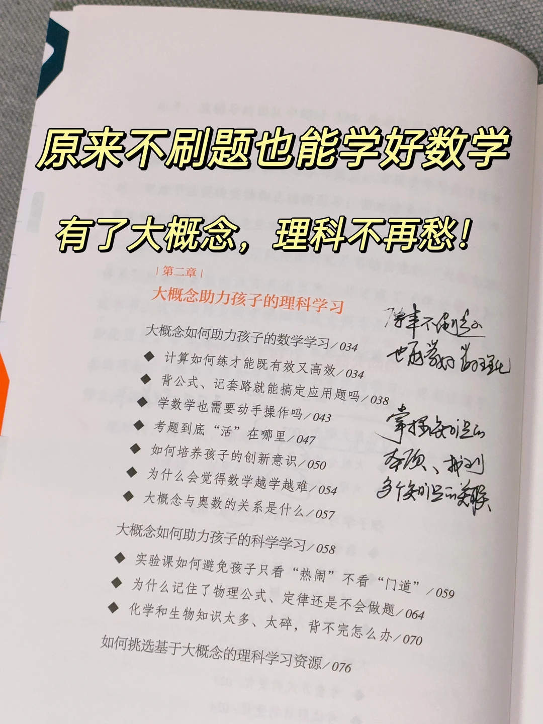 这本书太太太实用了,摒弃了老一套“背题型、记套路”的方法,提出了“大概念新体系”,引导孩子理解知识的本质,培养“会学习”的底层能力,打破知识间的壁垒,构建自己的知识结构体系,从而做到一通百通。就是培养孩子不仅学会,更会学、会用的能力。