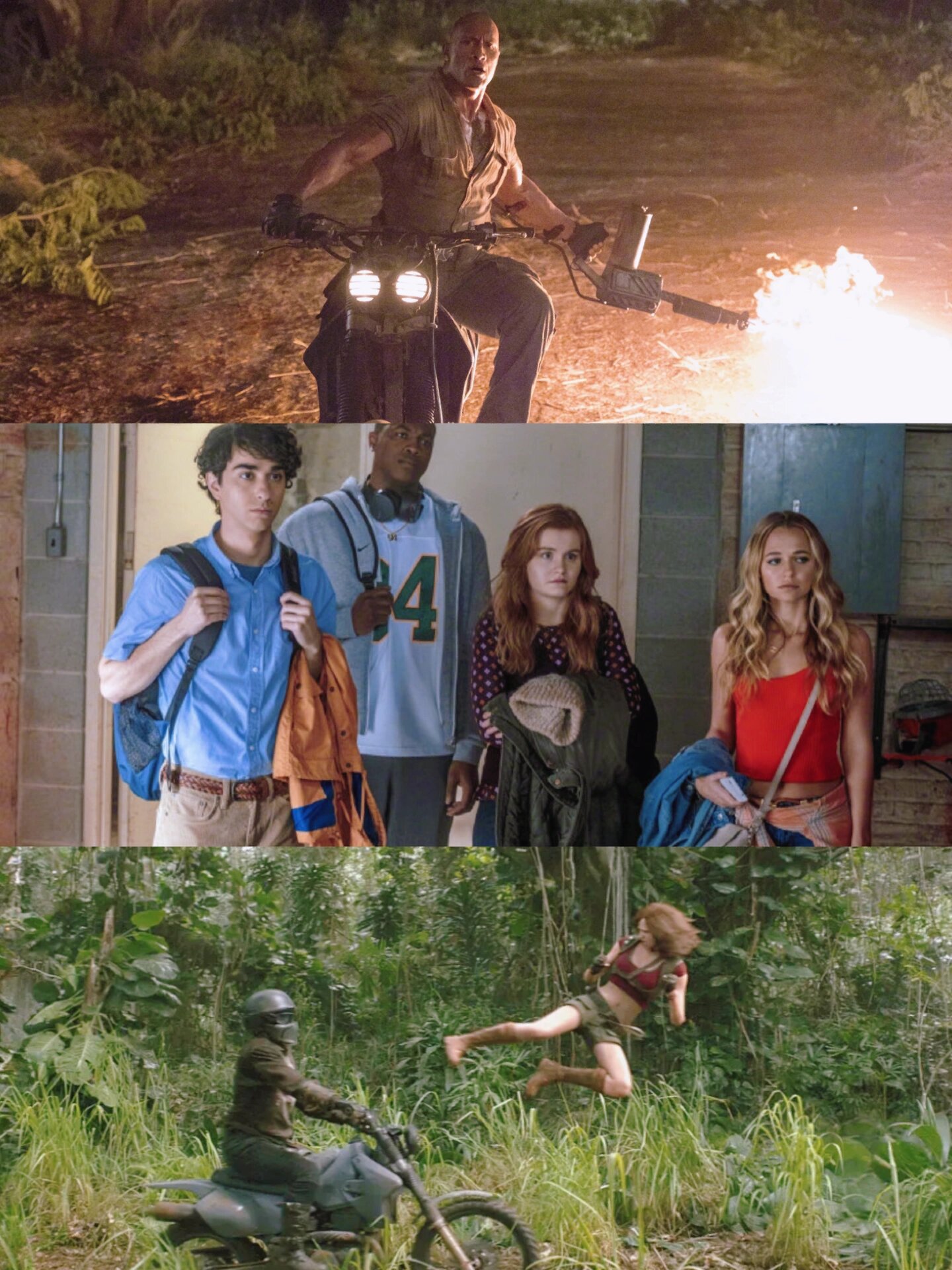 🧝♀️四名性格迥异的高中生被留校劳动,在一间堆满陈旧废弃物的储藏室内发现了一台年代久远的游戏机。谁知却被吸进了游戏机里,意外穿越到险象环生的勇敢者游戏中,变身成为与自身性格外貌截然不同的游戏角色:瘦小斯宾塞变成了大块头冒险家勇石博士、高大威猛的运动员弗里奇变成了身材迷你的龟速行李手 ,万人迷校花贝珊妮变成一个中年发福教授,自闭内向的学霸玛莎变成了魅力十足的热辣女打手。