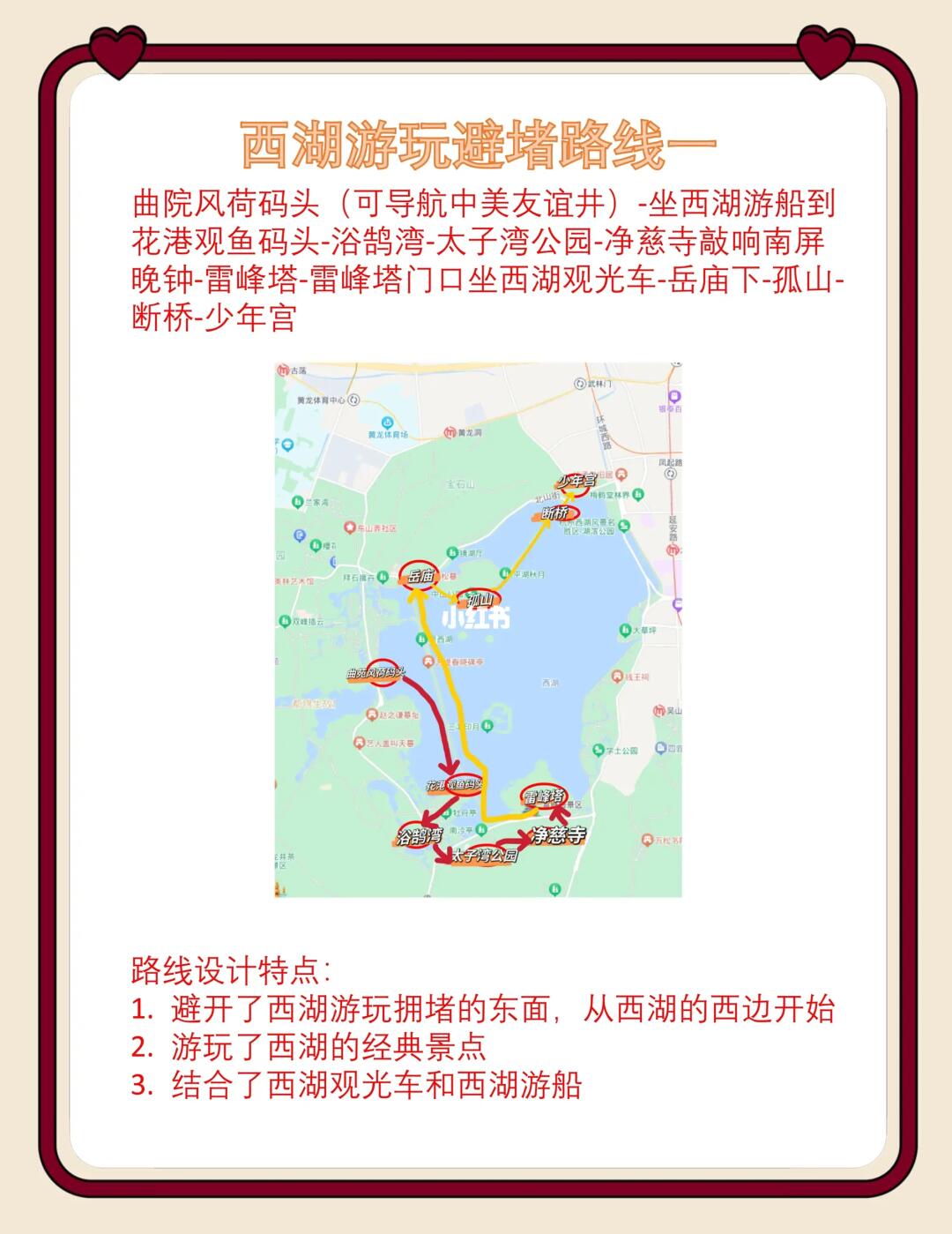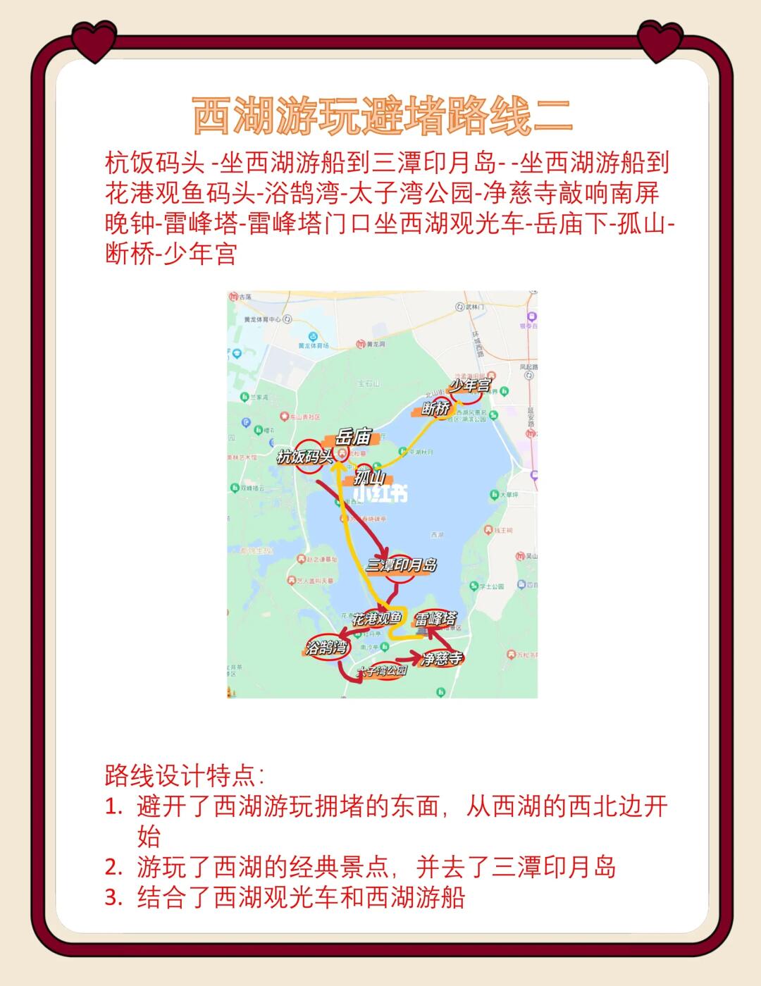 ⚠️所以,你可以按照图2、3,从西湖的西面或者北面开始游玩,能够避开大部分人流