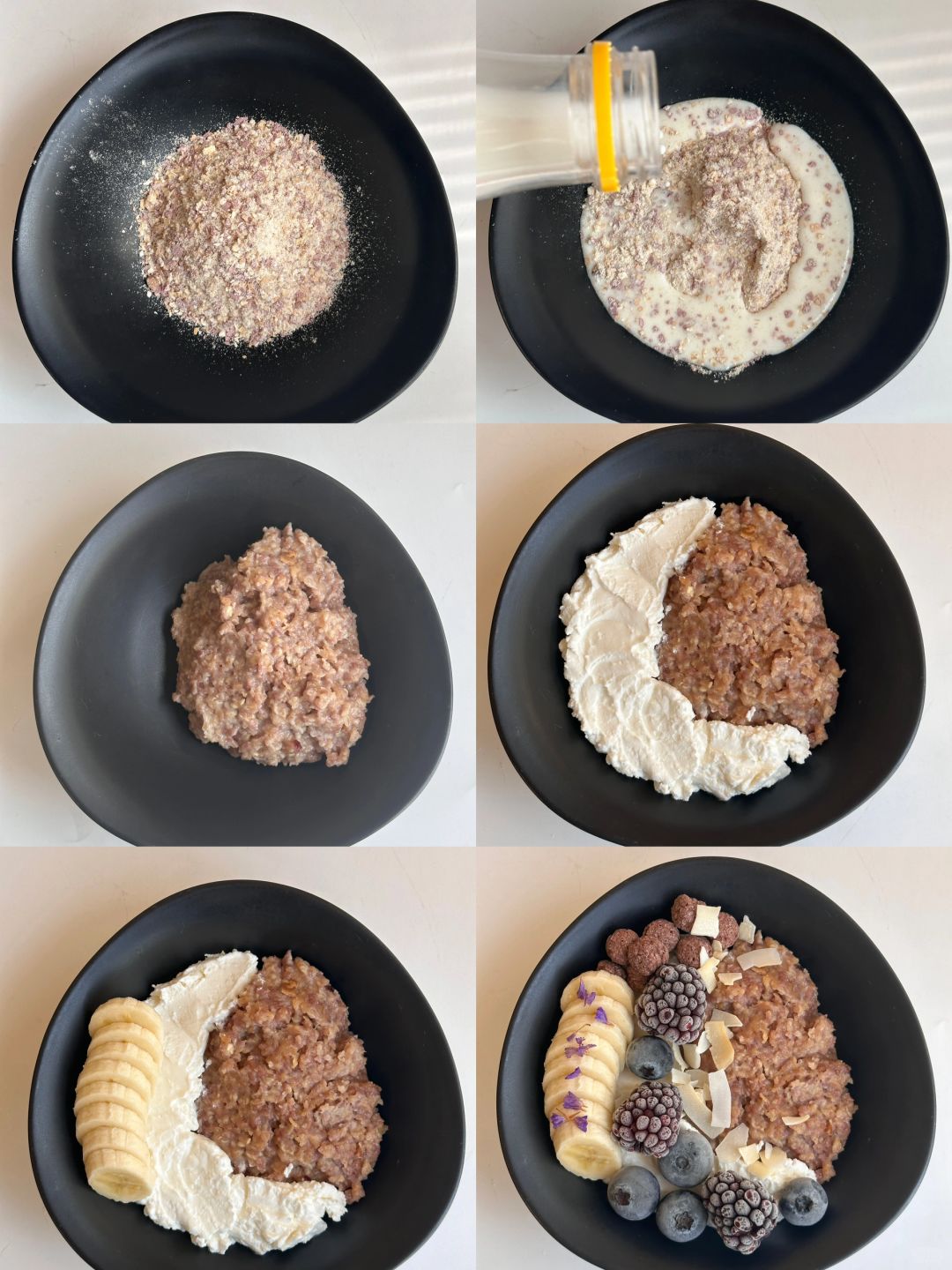 一人食吃什么 今日份早餐是又养生又快手的红枣燕麦酸奶碗🥣 十分钟就能搞定 红枣紫薯燕麦片倒入碗中 加入牛奶搅拌均匀 再加入希腊酸奶和水果装饰 营养健康又美味 超级适合早八党做早餐~