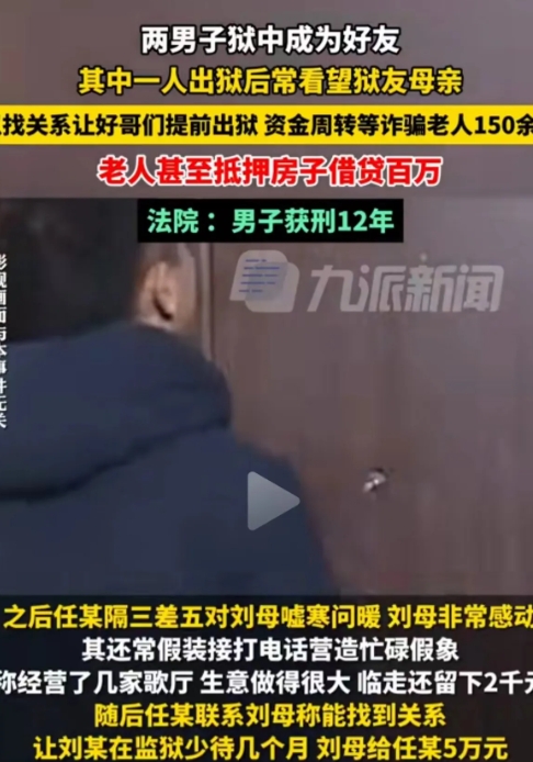 天津,男子入狱后,和一狱友结为兄弟,他出狱时,狱友拜托他照顾老母亲,男子一看狱友家里有钱,就见财起意,骗狱友母亲说他有关系,能让狱友早出来几个月,需要用钱打点,狱友母亲把房子抵押,被男子骗了159万,法院这样判了。网友:坏透的人改不了。