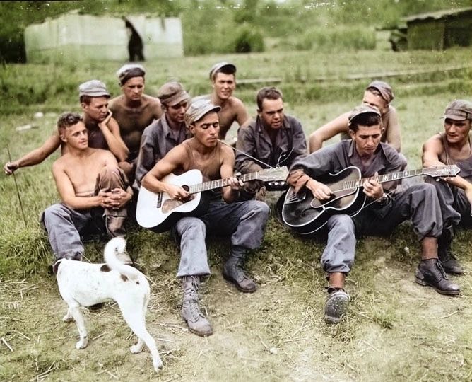 图5:1945年4月12日,在缅甸腊戍附近,美军第49野战军外科医生难得享受着美妙的音乐