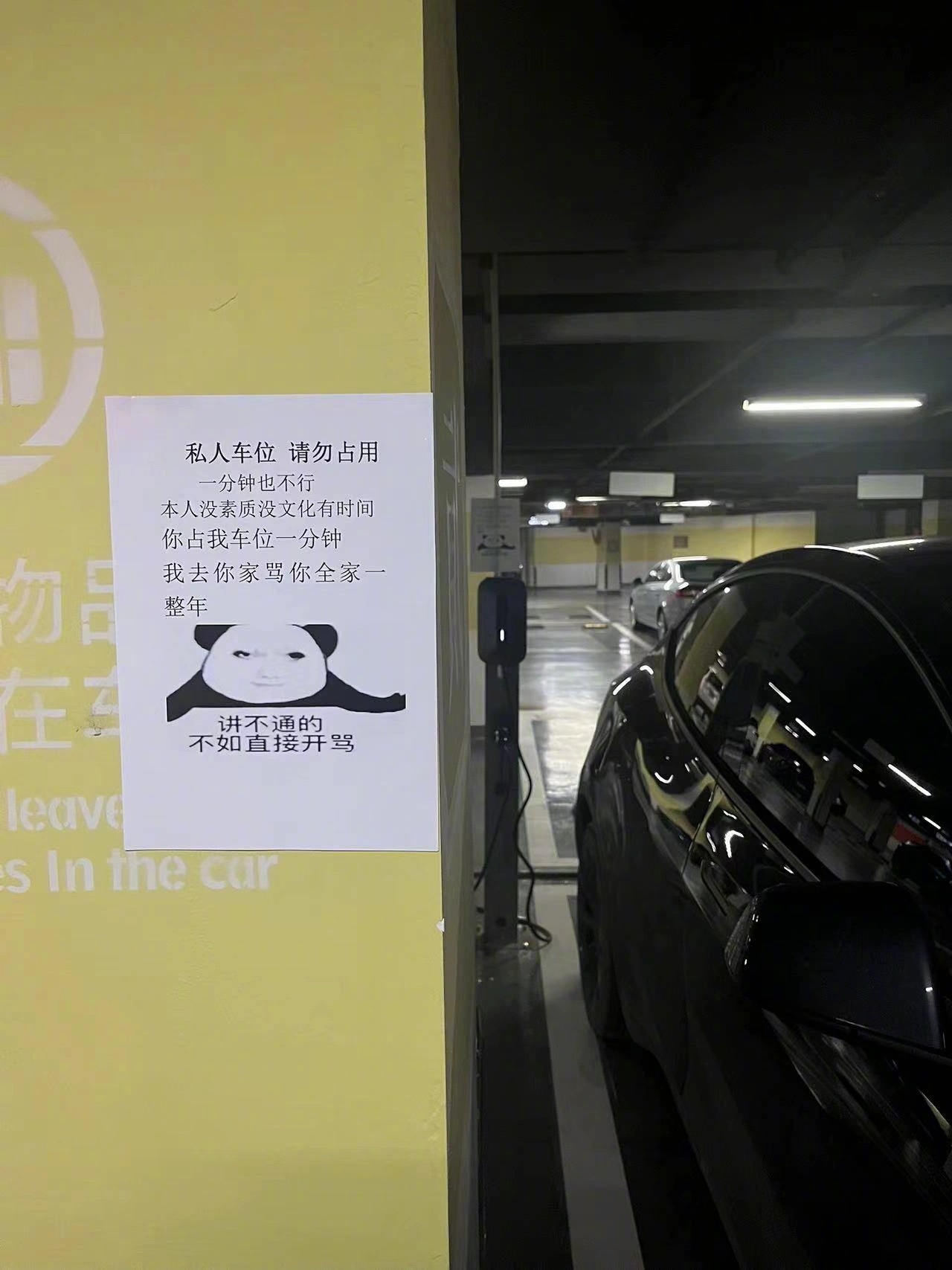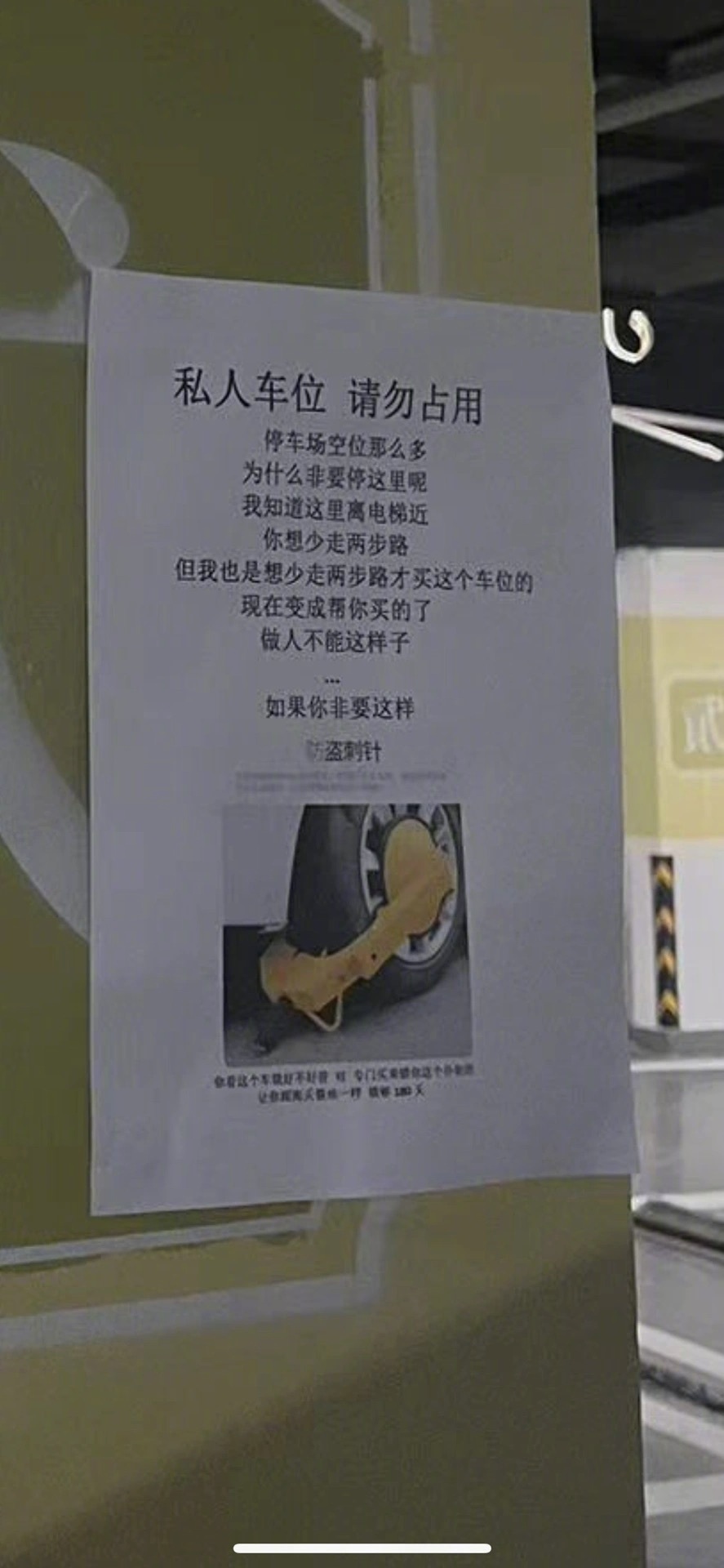 我这上面贴着私家车位+车牌号码就没人敢停了